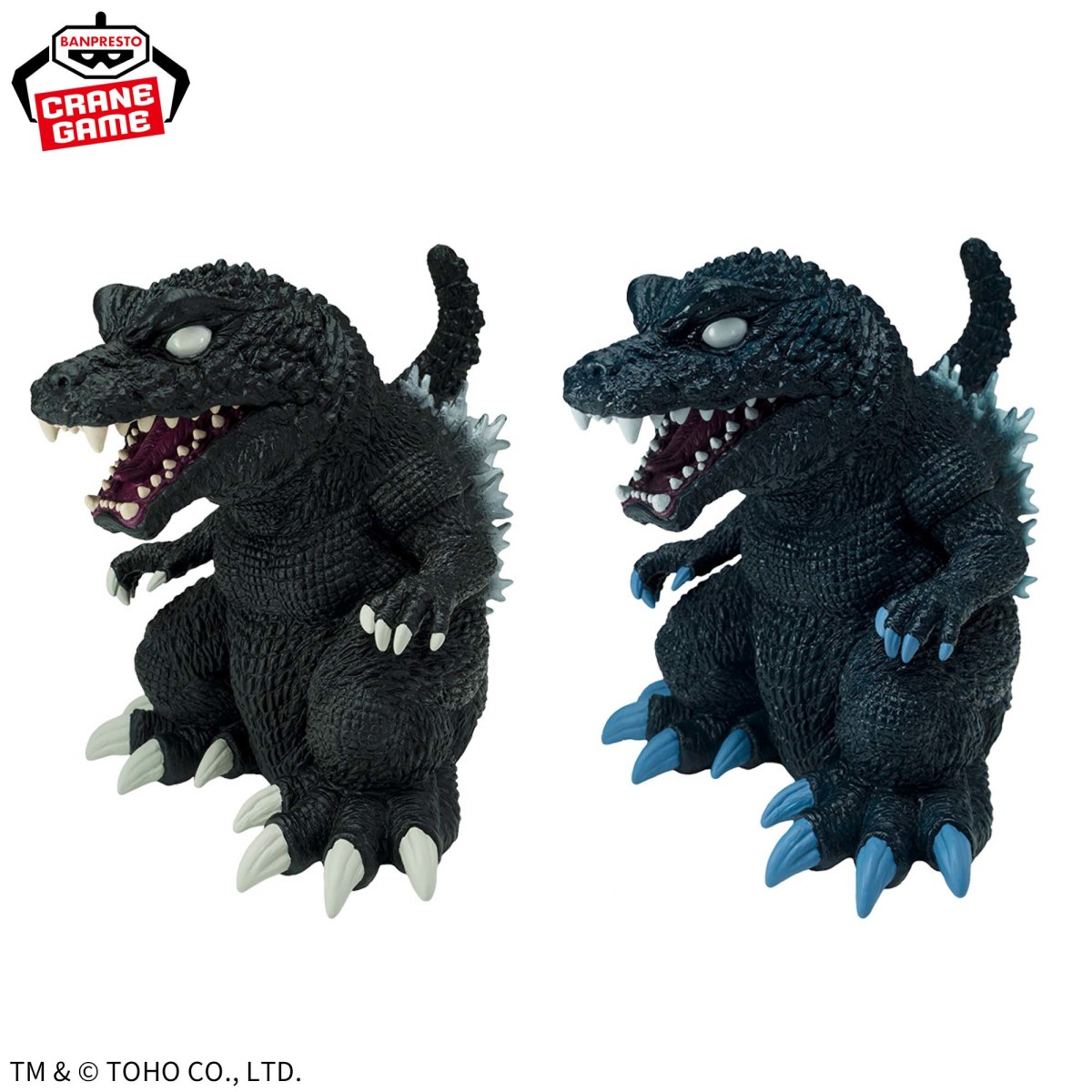 「鎮座獸EX 哥吉拉(2001)」採用全高約 14 公分尺寸製作,在低頭身比例下細膩雕塑出此版哥吉拉特徵的白眼、巨大犬齒、兇惡面孔、駝背姿勢,讓人回想起劇中近乎無敵的破壞神之姿,徹底再現系列首屈一指的兇暴造型。這款景品也將同步推出兩種色彩版本,分別為一般配色的「Ver.A」,以及全身施以藍色調、彷彿劇中在東京灣深水展開決戰的「Ver.B」。