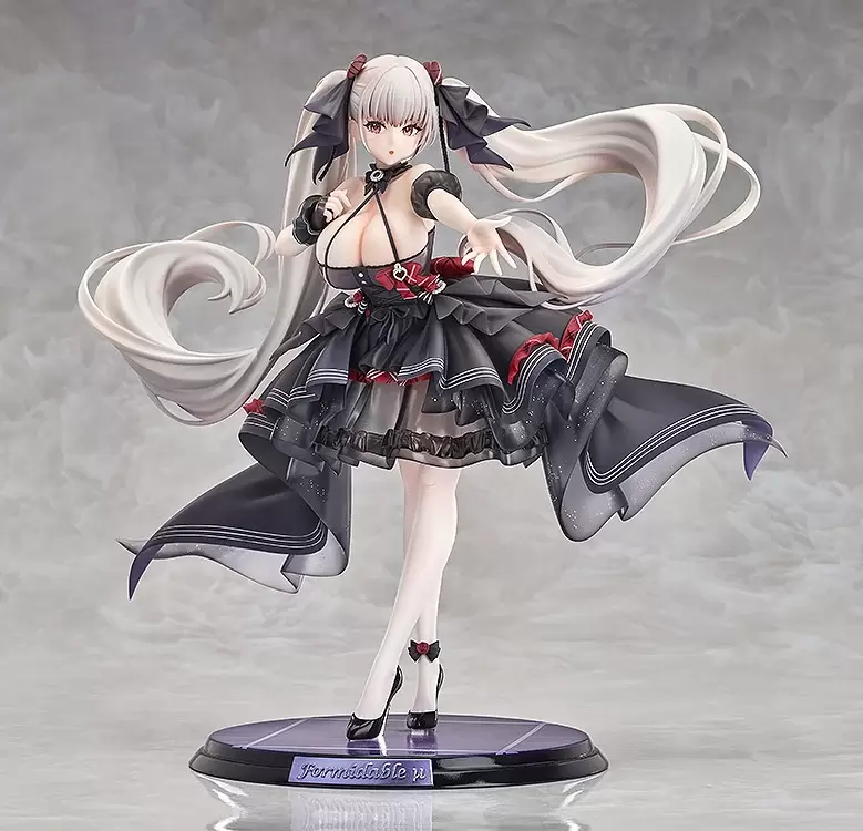 GSAS「可畏(μ兵裝)」1/7 比例模型,以母港偶像節的μ兵裝造型,重現可畏作為偶像的全新魅力!尺寸高約 23 公分,還原在舞台上閃耀的可畏,重磅的白皙雙峰呼之欲出,仔細刻劃多層結構的裙裝,透過透明材質呈現出薄紗質感,自然的皺褶表現營造出布料的輕盈與雪紡效果;細膩的塗裝,除了強調立體感,更重現閃耀感~展開的雙馬尾增加躍動感,舞台風格的底座,承受重量的程度令人刮目相看(X