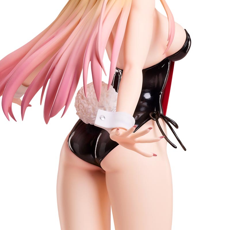 本次的「喜多川海夢 裸腿兔女郎 Ver.」高約 45 公分,與 2024 年 02 月發售的「喜多川海夢 兔女郎 Ver.」採用相同的模型,為海夢打造了穿著性感連身馬甲的兔女郎造型,雕刻展現她纖細姣好的體態,以亮面漆色呈現漆皮效果的馬甲在光線的照射下大大的凸顯了胸口延伸至腰部的身材曲線,並細膩的塗裝再現了標誌的金粉漸層髮色!而這次最大的不同在於去除網襪的裸腿造型,修長的美腿與臀部交接的縫隙細節一覽無遺,腿部白裡透紅的肌膚看起來吹彈可破,與艷麗的黑色兔女郎裝交織出的對比配合海夢的壞笑實在是讓人難以招架啊!