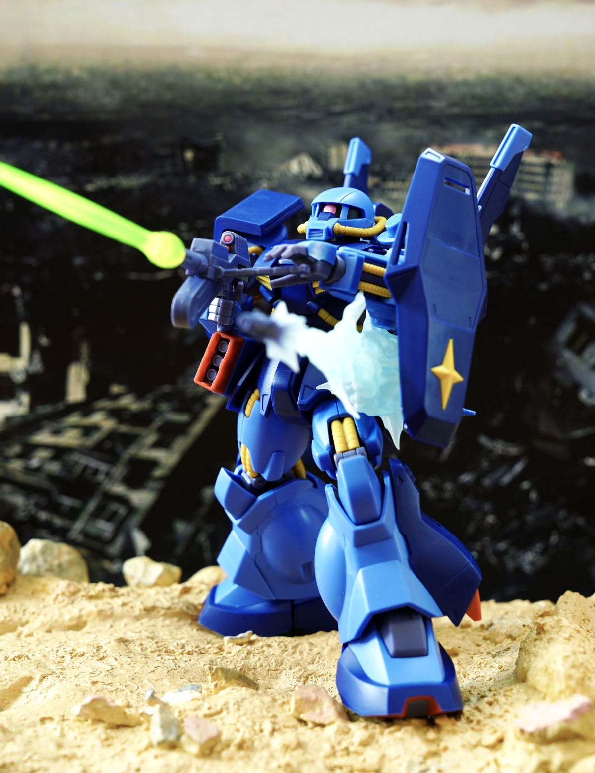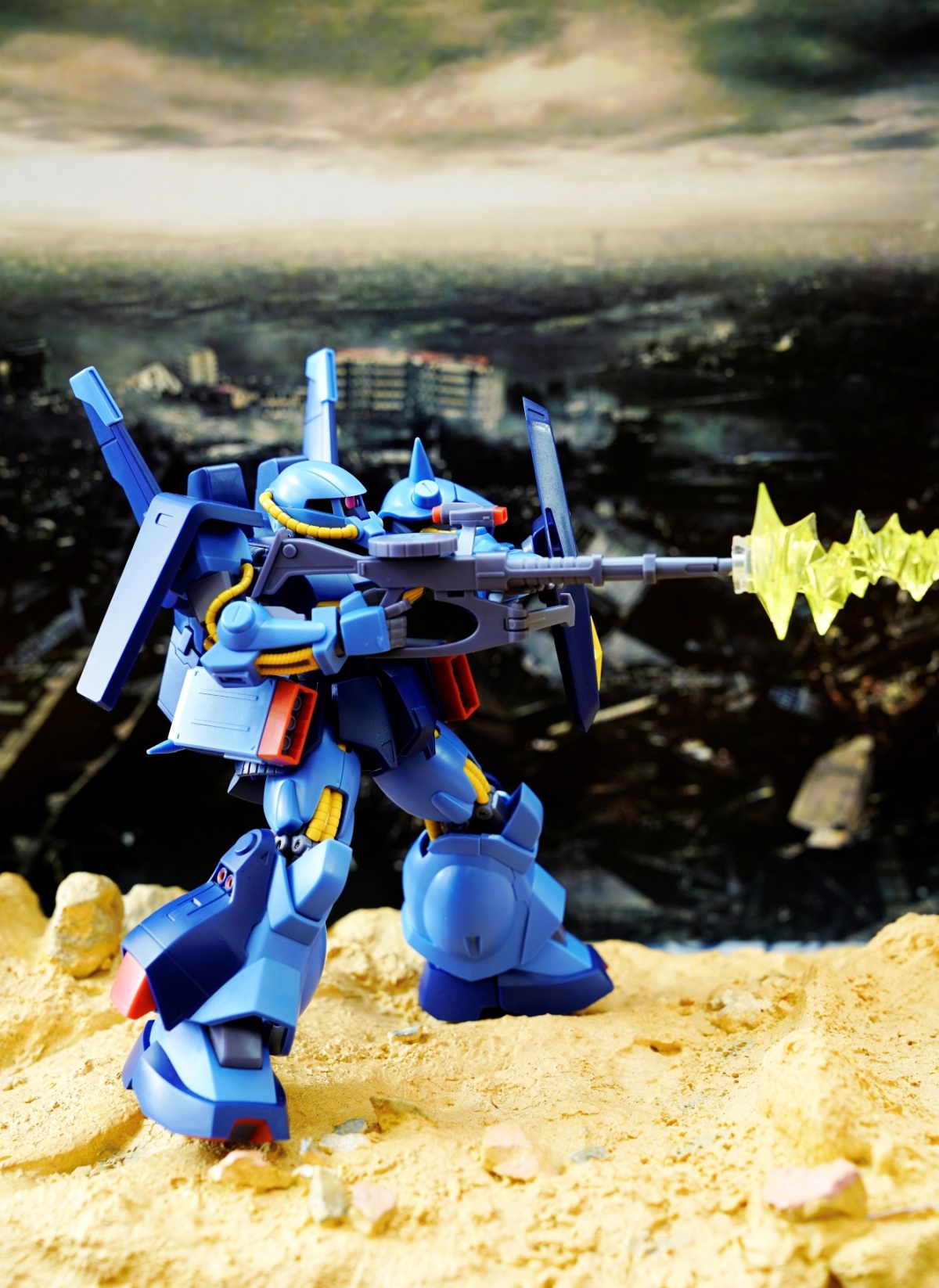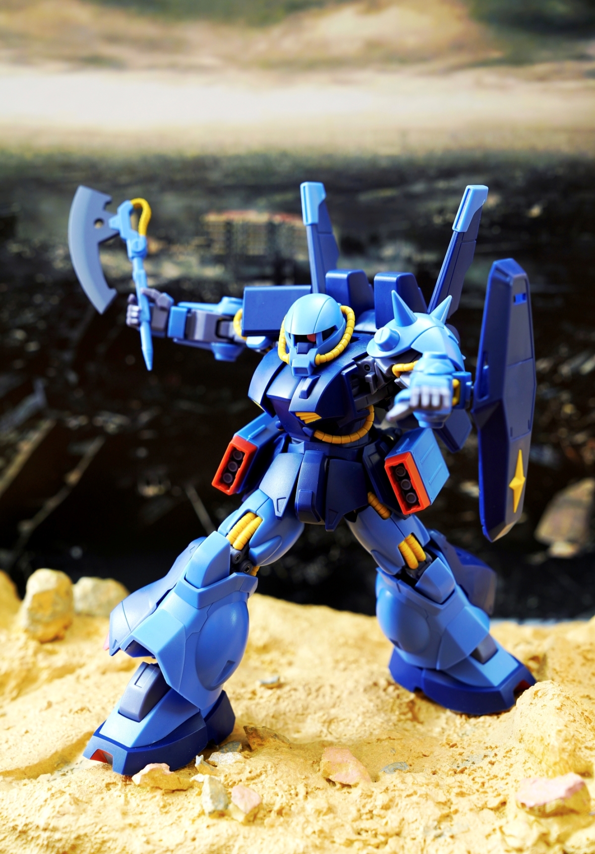 主體全高約 125 mm,武裝配件非常豐富,包括更換用手掌左右各4種,120mm薩克機槍改,電熱斧,飛彈匣艙,軍刀握柄,護盾,光束步槍,光束步槍用備用 E-Pack×2,光束軍刀,武器固定連接配件,各種特效配件,手掌收納架等等,可玩性滿點。