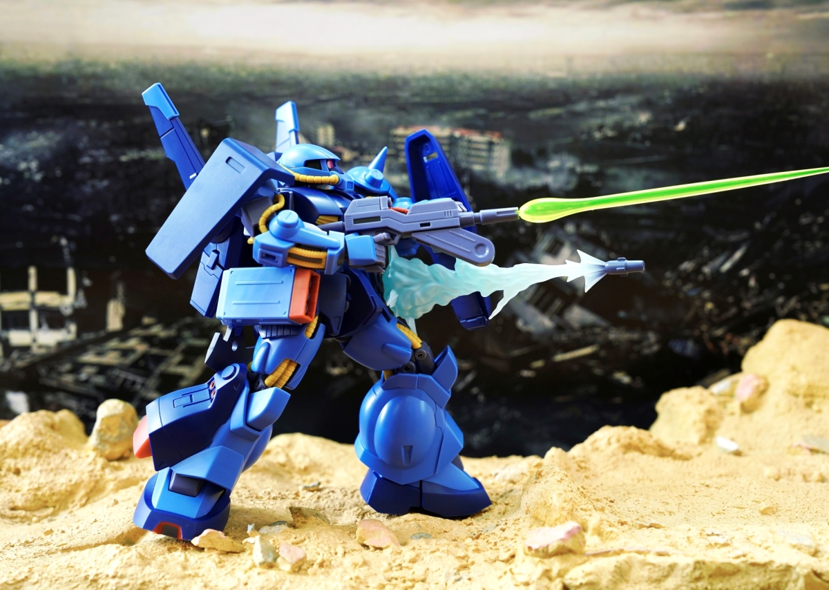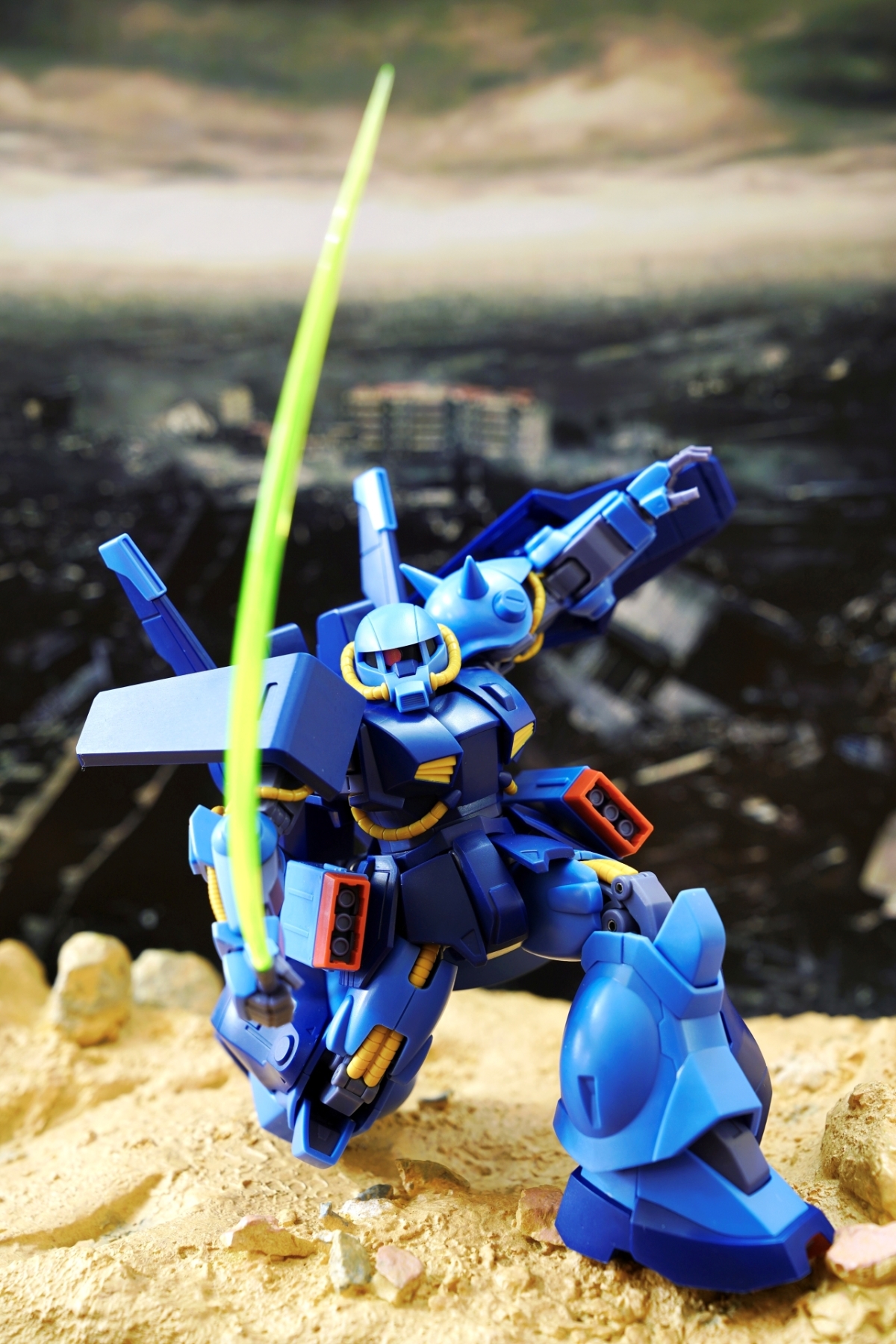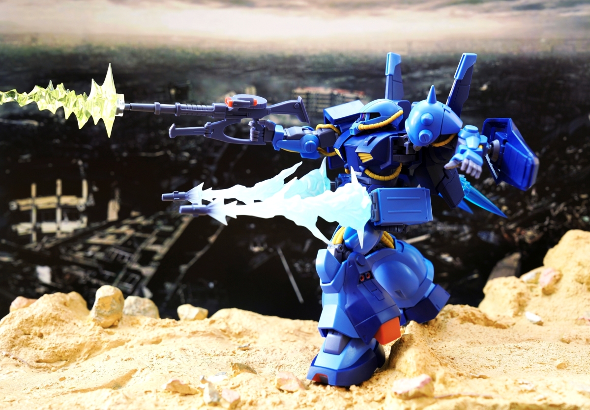 主體全高約 125 mm,武裝配件非常豐富,包括更換用手掌左右各4種,120mm薩克機槍改,電熱斧,飛彈匣艙,軍刀握柄,護盾,光束步槍,光束步槍用備用 E-Pack×2,光束軍刀,武器固定連接配件,各種特效配件,手掌收納架等等,可玩性滿點。