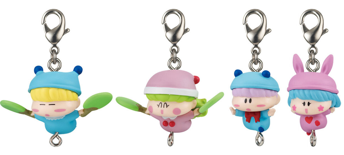 本次的「魔法咪路咪路!垂掛人偶吊飾」將精靈們在劇中揮舞扇子飛行或跳躍的動態製作成高約 3 公分的角色模型,收錄咪路、莉露姆、姆路以及帕比四位角色,吊飾部分分為球鏈和龍蝦扣兩種版本,共 8 種款式。轉蛋在小巧的尺寸下還原角色們的造型細節,並可以透過人偶胸口與頭頂的掛勾將所有吊飾串連起來,掛在背包上展示並列的可愛模樣,喜歡魔法咪路咪路的各位玩具人千萬不要錯過!