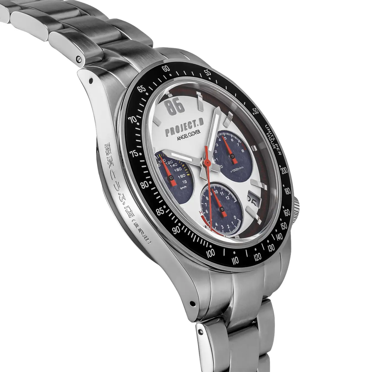 以藤原拓海的愛車「TOYOTA Sprinter Trueno AE86」為設計靈感,就來自那台標誌性的黑白塗裝。白色錶盤搭配亮黑副錶盤與黑色外框,12點鐘位置設有醒目的「86」字樣,而副錶盤的設計靈感則來自AE86的儀錶板。