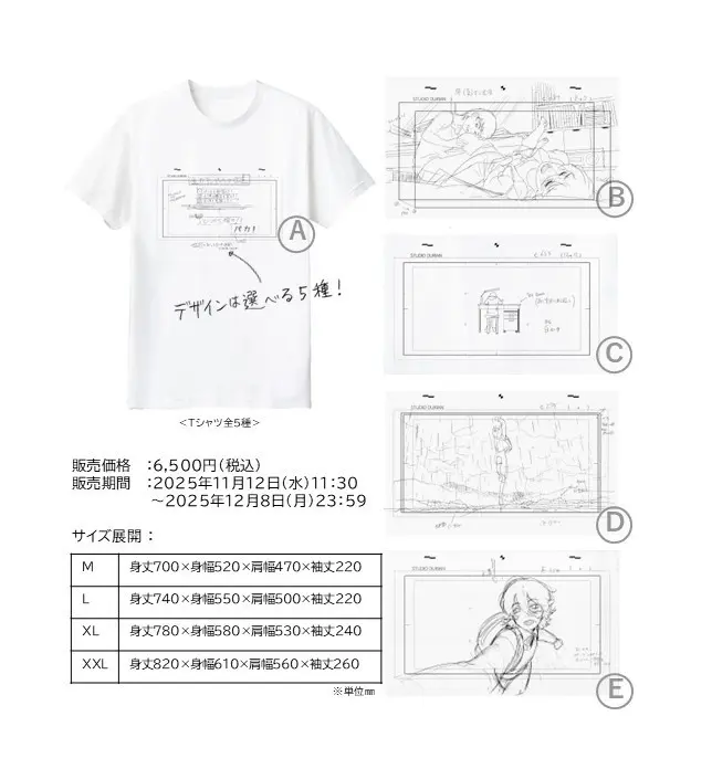附「押山清高導演精選展覽原創T恤」乙件,可從藤野與京本的5款經典場景中挑選。購票者還可獲得展覽限定紙袋,票價為6,500日圓。