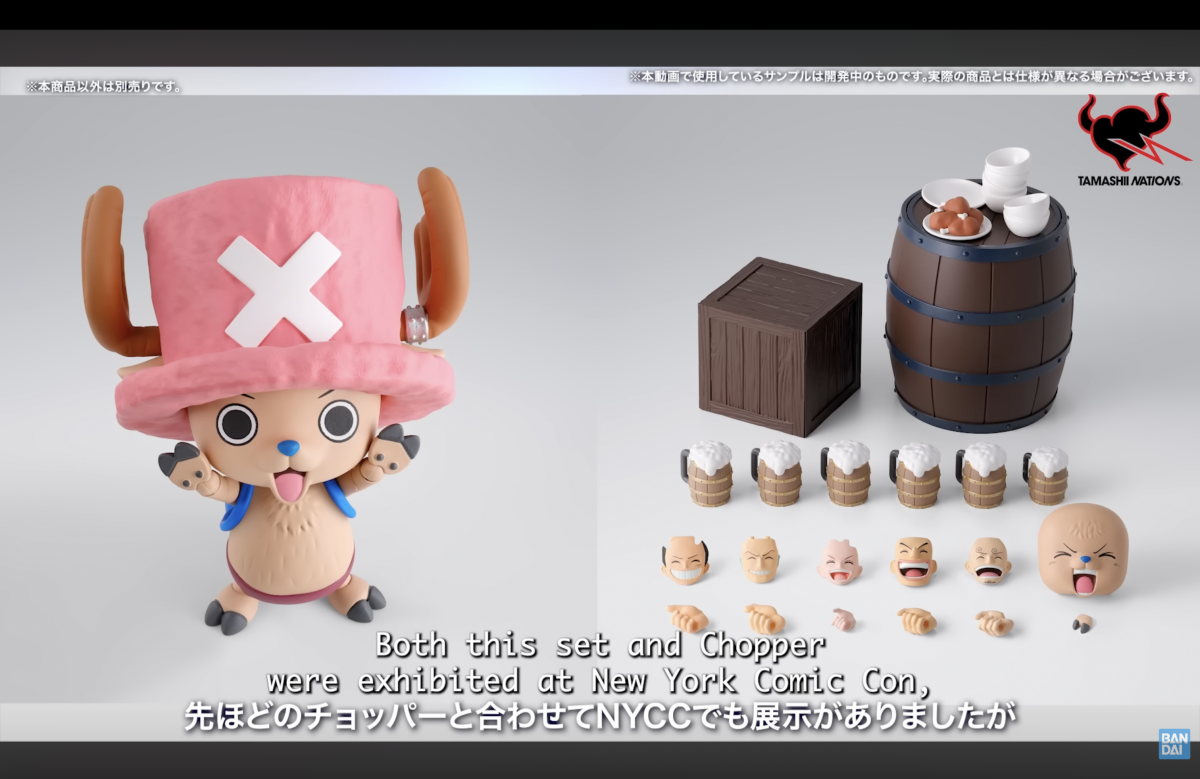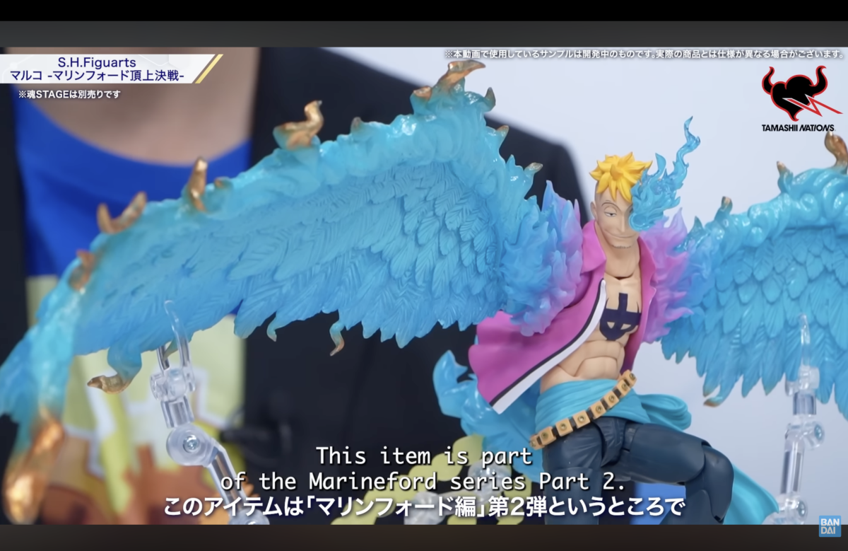 直播首先介紹了先前在紐約漫畫展展出、昨日同步公開商品資訊的兩件《航海王》主題商品——「多尼多尼·喬巴 -磁鼓島-」以及「宴會套組-草帽小子一行人-可動人偶配件包」,並與 S.H.Figuarts《航海王》系列企劃擔當的秋場先生一起介紹了先前發表的「蒙其·D·魯夫 -馬林福特頂上戰爭-」以及「馬可-馬林福特頂上決戰-」!