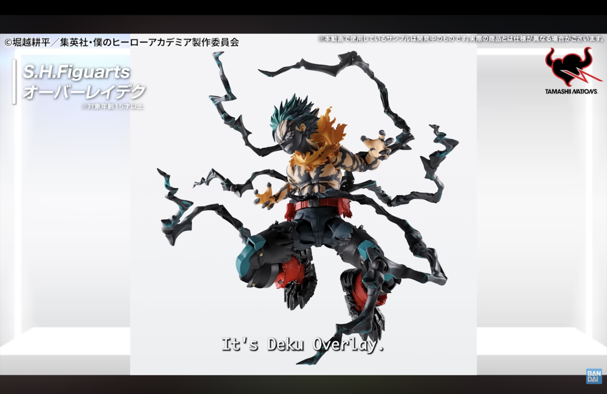 緊接著秋場先生與主持人介紹了《我的英雄學院》系列近期發表的「裝甲・歐爾麥特」以及「爆豪勝己-The Beginning-」,並先行公開了參考動畫最新的第 165 集〈撬開吧!綠谷出久〉中造型打造的「Overlay 笨久」(暫譯),再現全身以五代繼承者的個性黑鞭纏繞,被死柄木調侃完全不像英雄的魄力姿態,為直播帶來第二波的高潮!