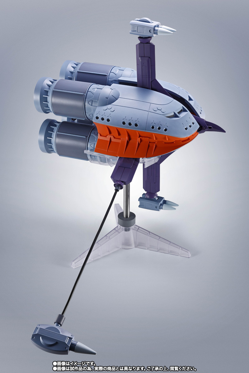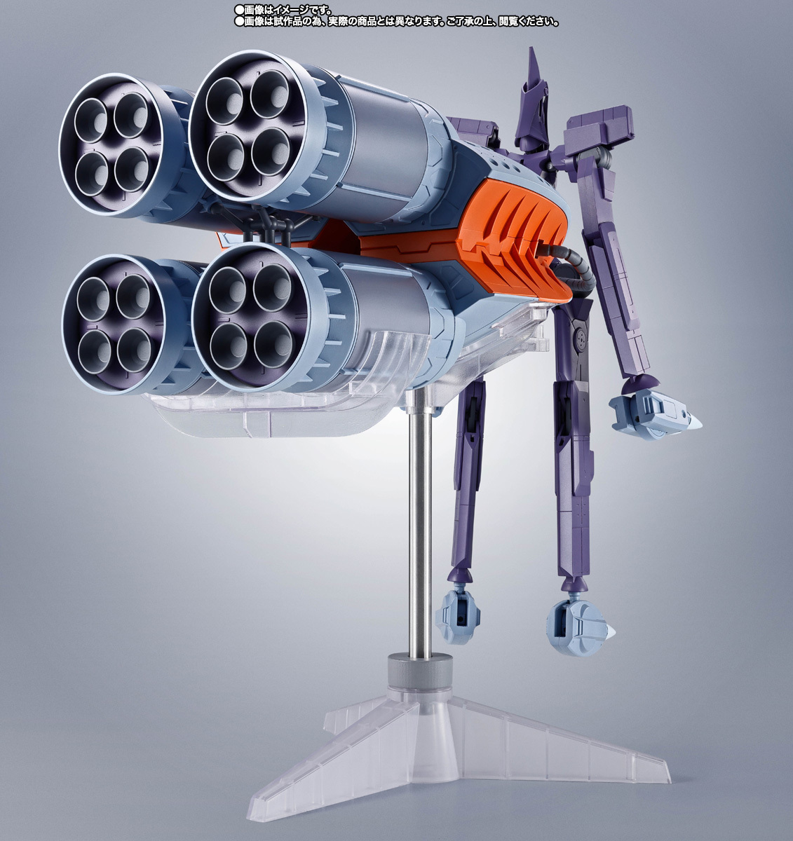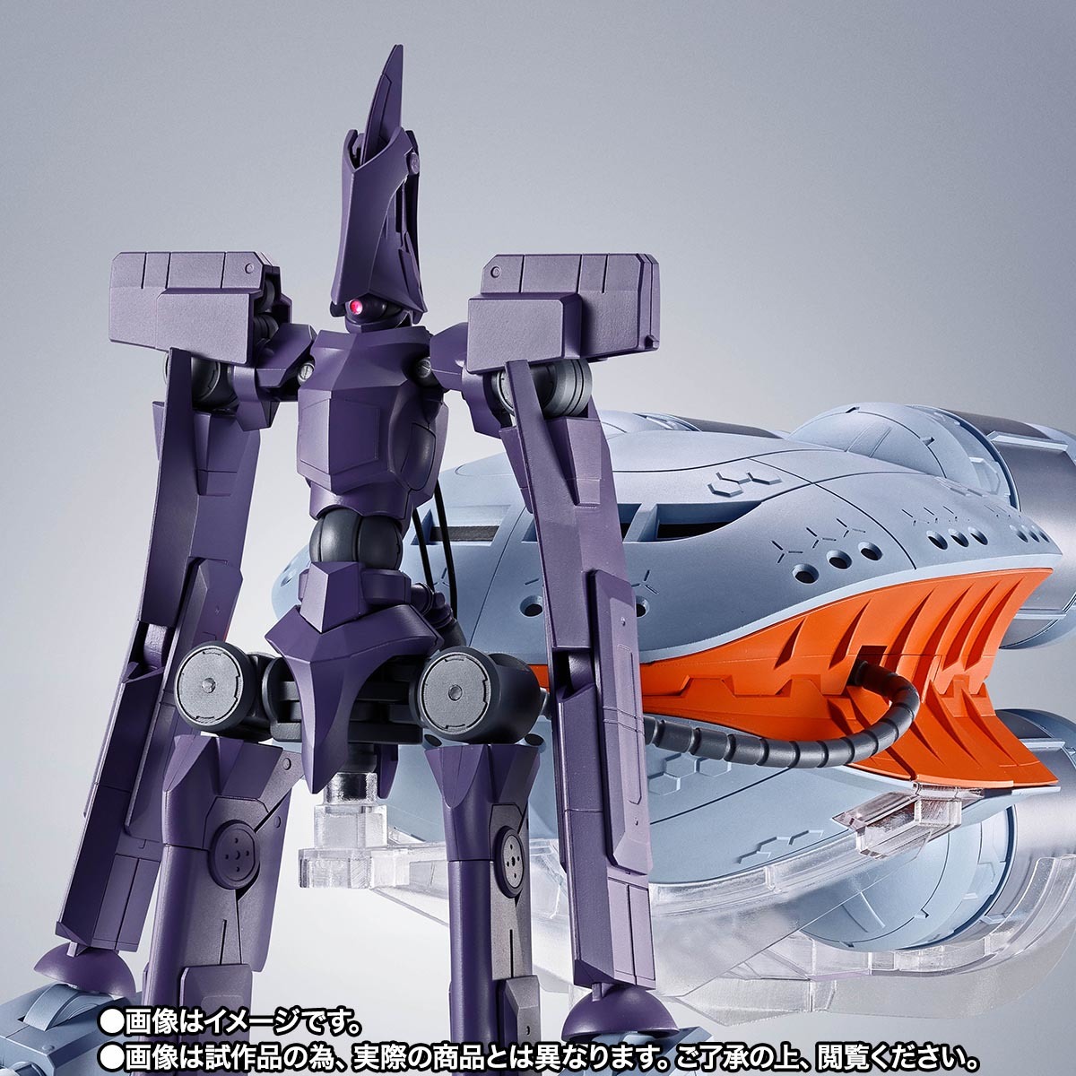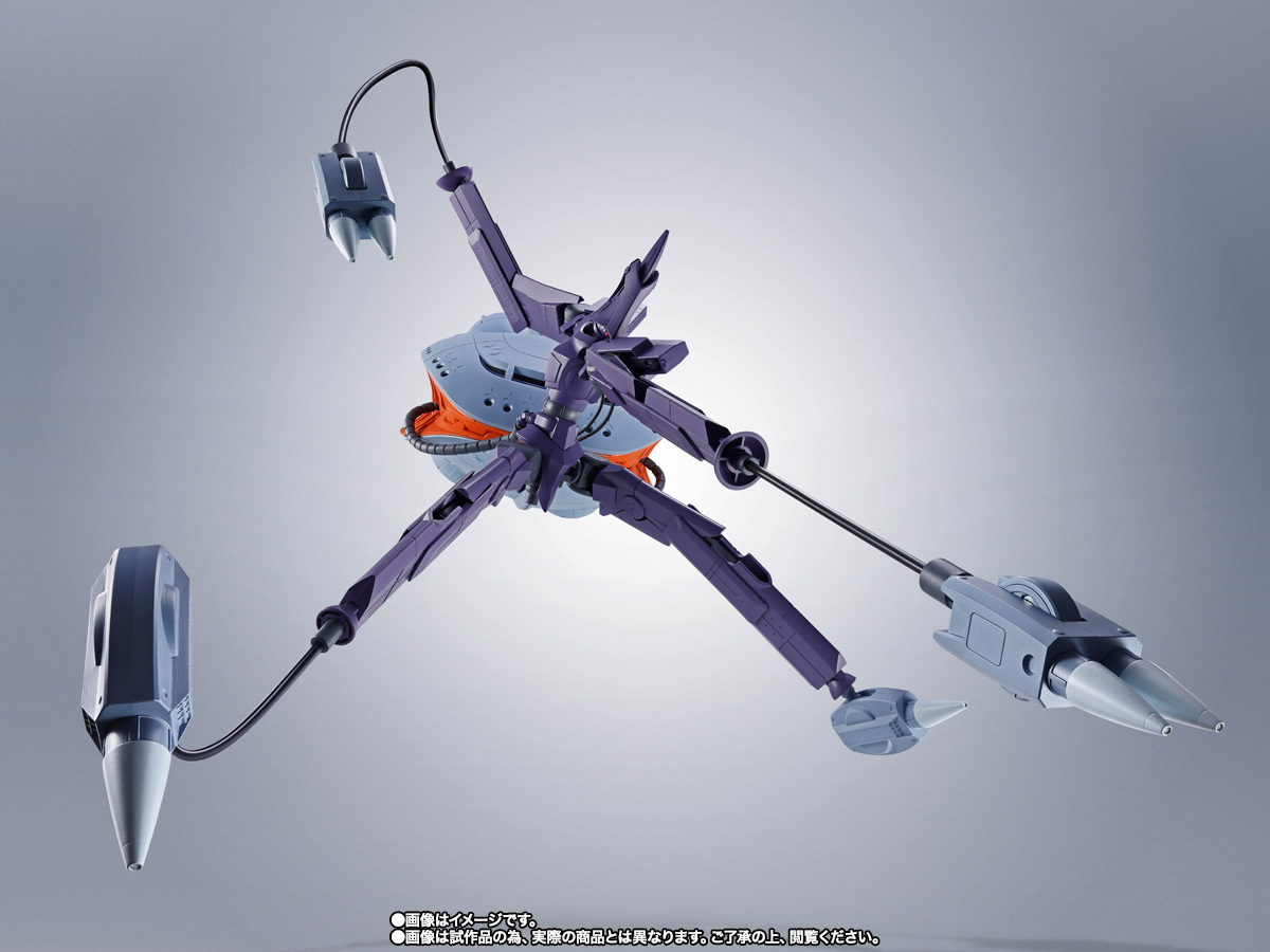 「ROBOT魂 齊克羅加」相較同系列的 GQuuuuuuX 機體擁有全高約 275mm 的魄力尺寸,基於動畫設定稿忠實再現外裝甲獨特的溝槽、後方四具大型推進器的噴嘴造型,搭配兩長兩短的纜線零件就能再現「有線式 MEGA 粒子砲」的全方位攻擊。