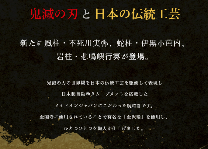 本次第二代款式全部採日本製,並使用自動上鍊機芯(採用 MIYOTA 825S),外型更性能也更加優秀,供喜歡鬼滅的粉絲收藏配戴。