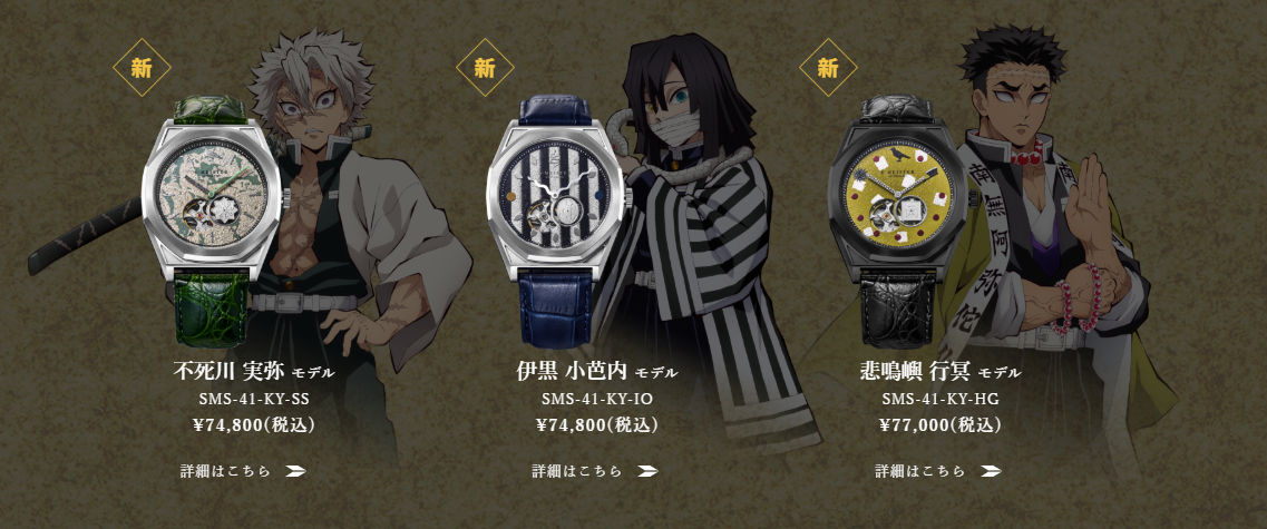 以精緻日本製工藝著稱的手錶品牌「SONNE」,旗下的機械錶支線「S-MEISTER」,先前就與人氣動漫作品《鬼滅之刃》合作,推出四款以人物為主題的聯名機械錶,頗受消費者青睞。