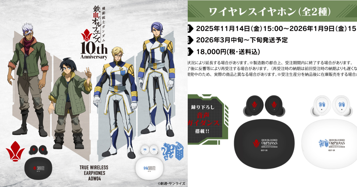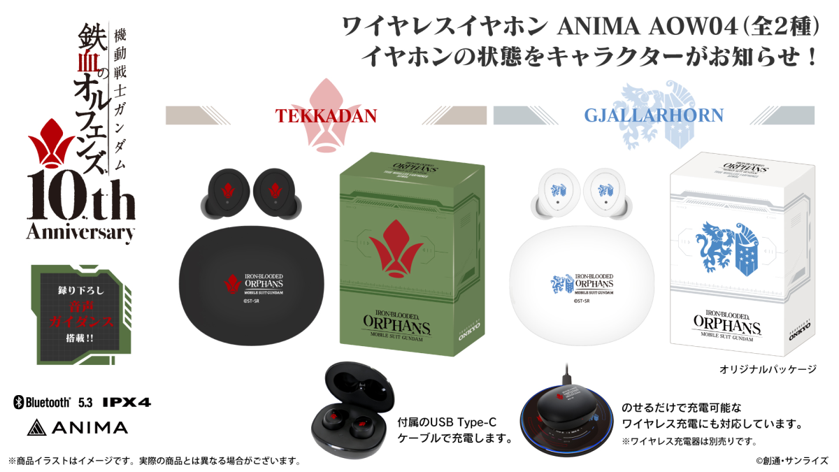 近日宣布與今年邁入動畫10周年的《機動戰士鋼彈 鐵血孤兒》合作,推出專屬聯名款無線藍牙耳機「ANIMA AOW04」,共有兩款可供選擇。售價為18,000 日圓,將於明日(11/14)起在ONKYO官網開放預購。