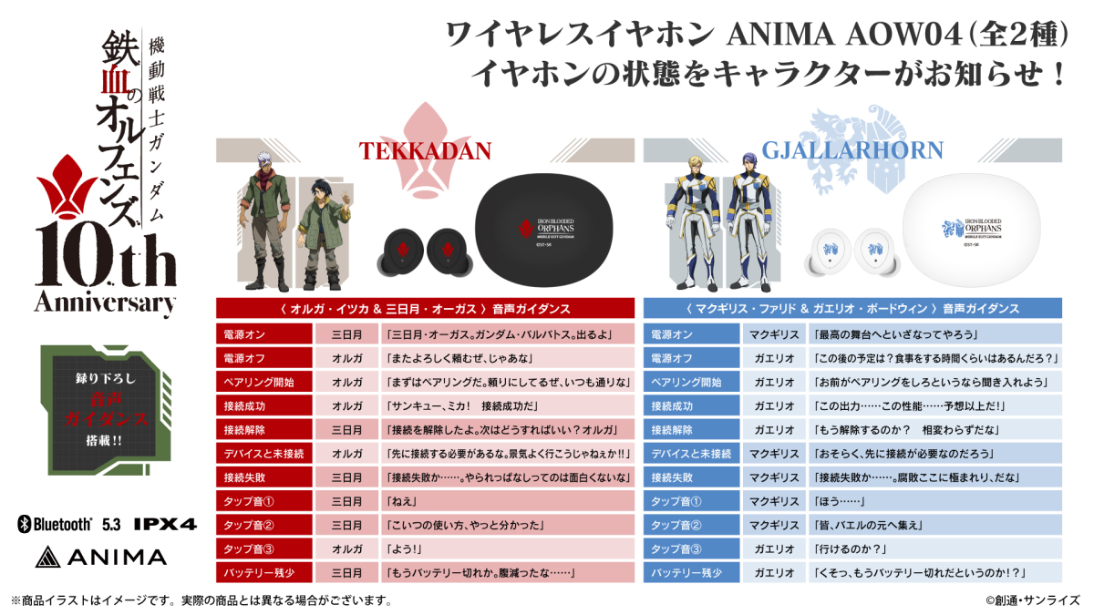 ANIMA AOW04 機動戦士ガンダム「鉄血のオルフェンズ」コラボモデル ワイヤレスイヤホン