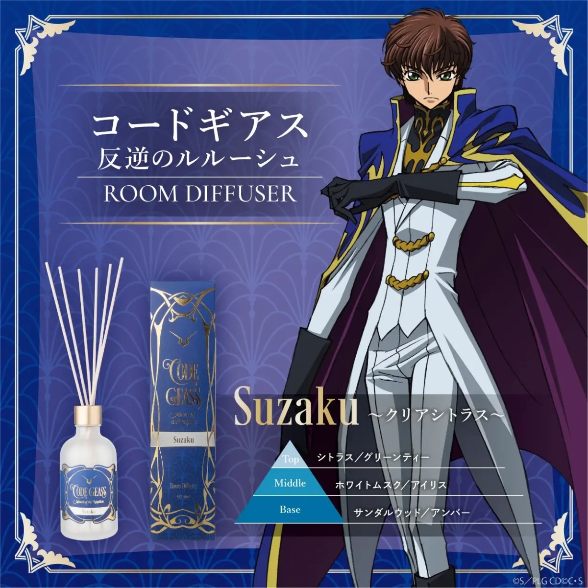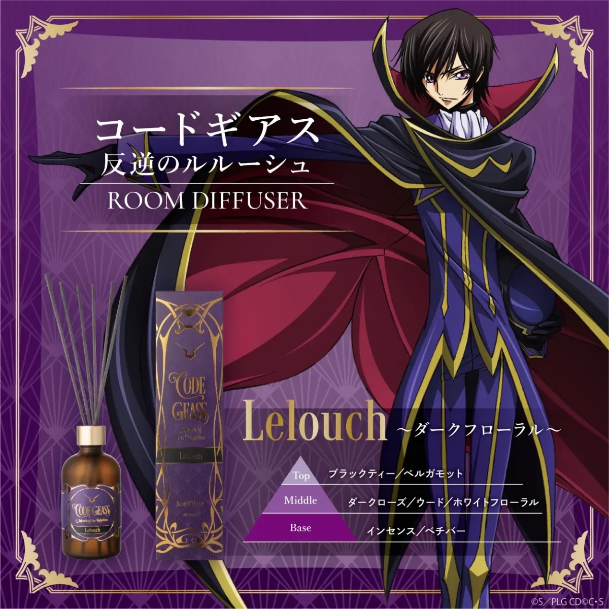 這次以魯路修、朱雀兩位主要角色為靈感,推出全新室內擴香,連香味都是角色個性的寫照。即日起開放預購至11月21日,預計明年2月發售。