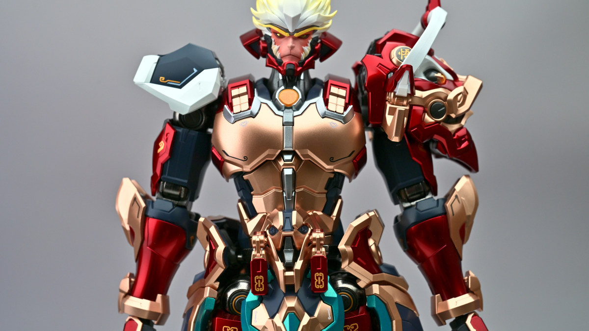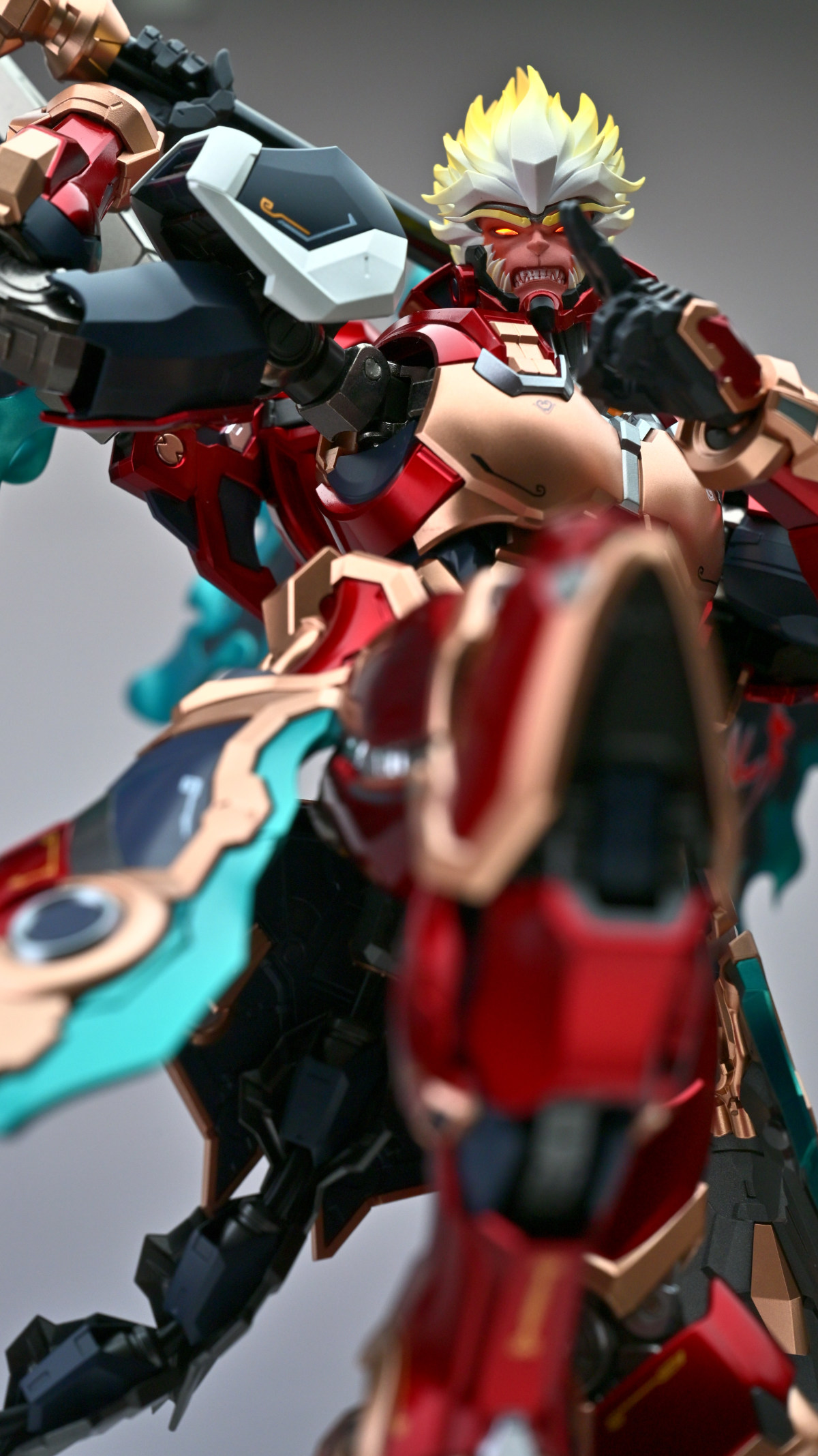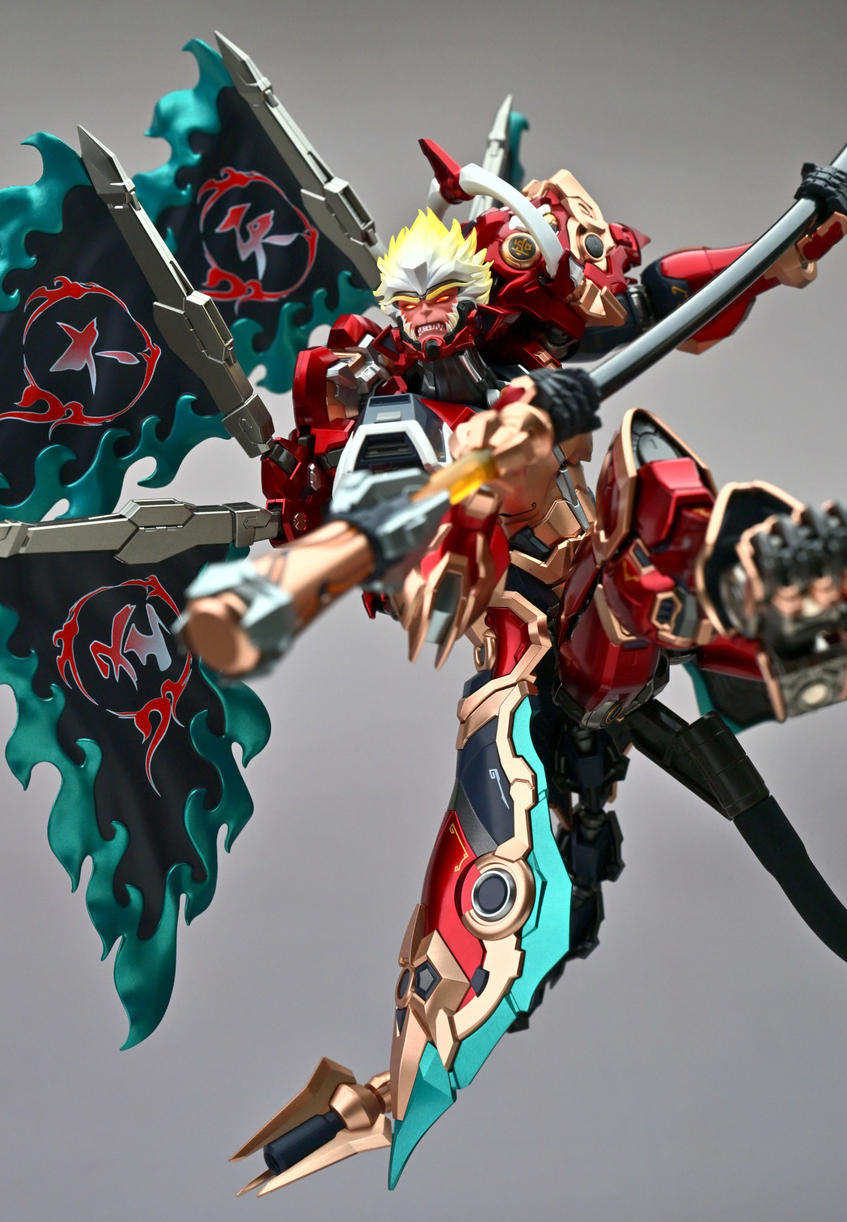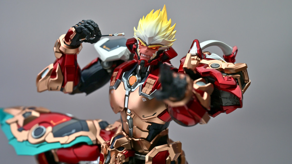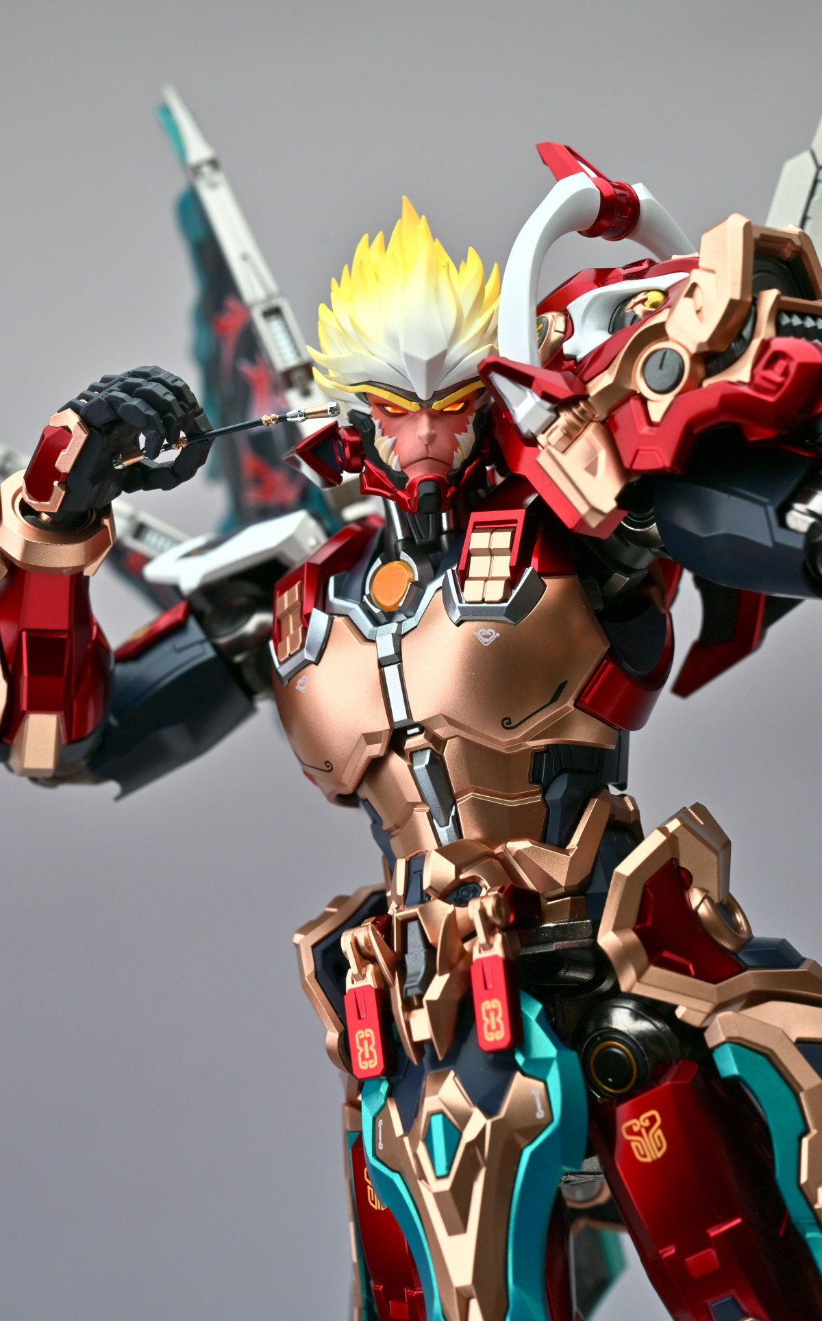 保留了猴子的元素將大家印象中的齊天大聖孫悟空直接機甲化呈現,MOSHOW這間公司在合金玩具上面的領域或許不是最頂的,但是MOSHOW的塗裝和品管可以說是數一數二的天花板等級,買過了甲斐之虎,梵天丸許多由MOSHOW出品的玩具,收藏到目前為止只能說品質真的是沒話說,價位方面也算合理C/P值很高,就把玩的玩具來說真的很超值。