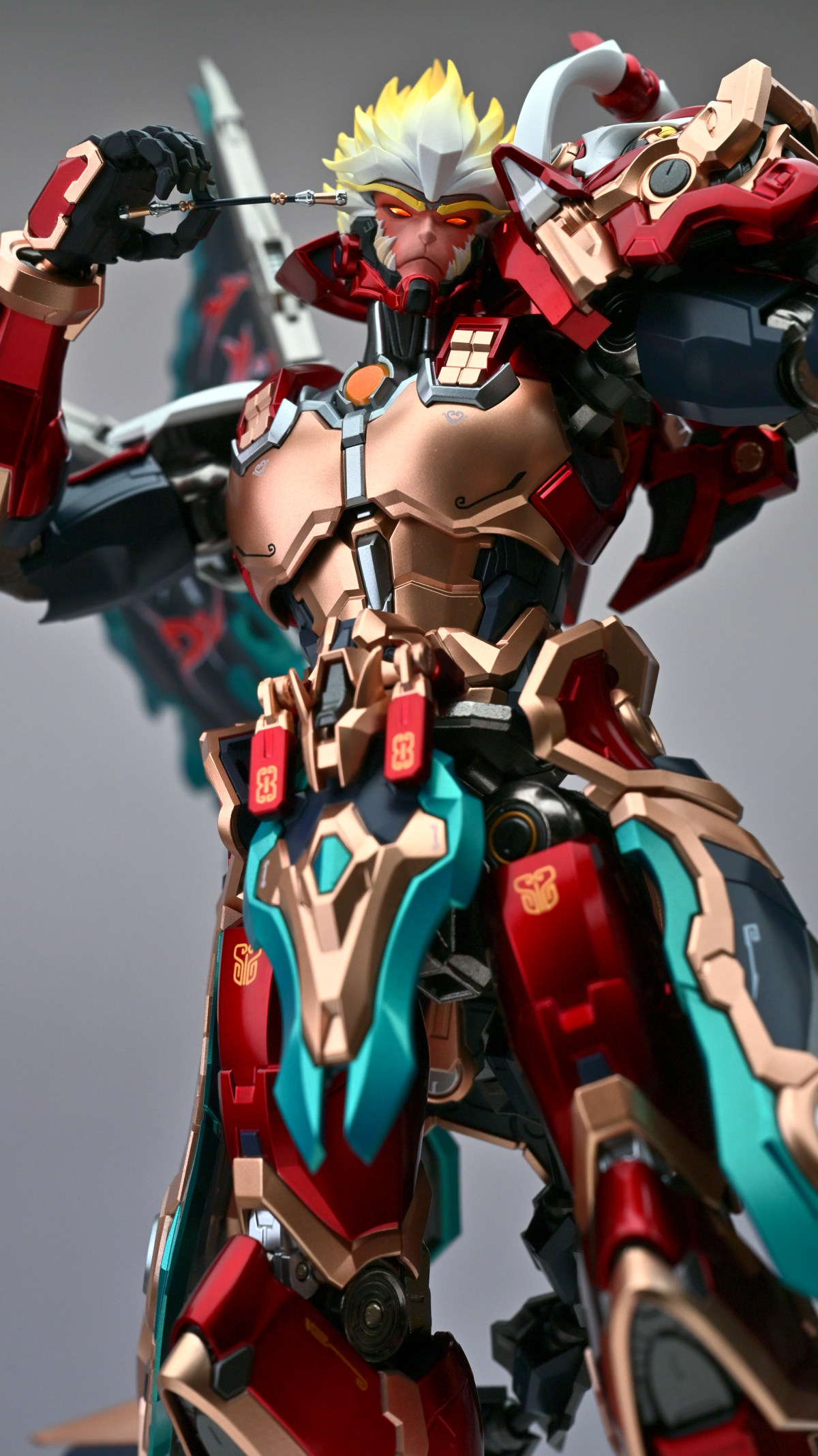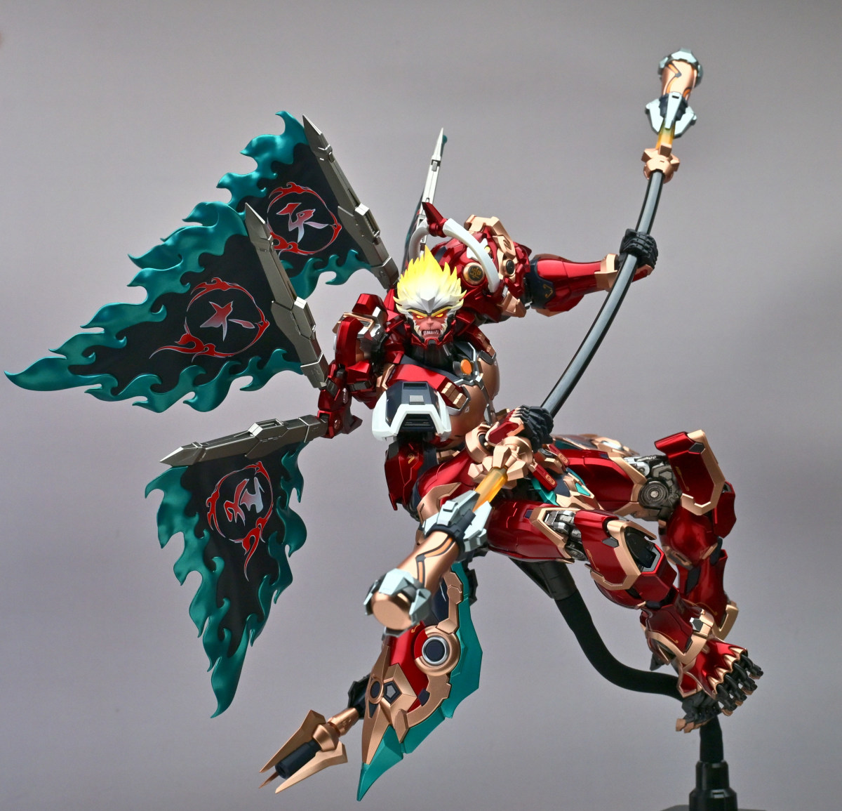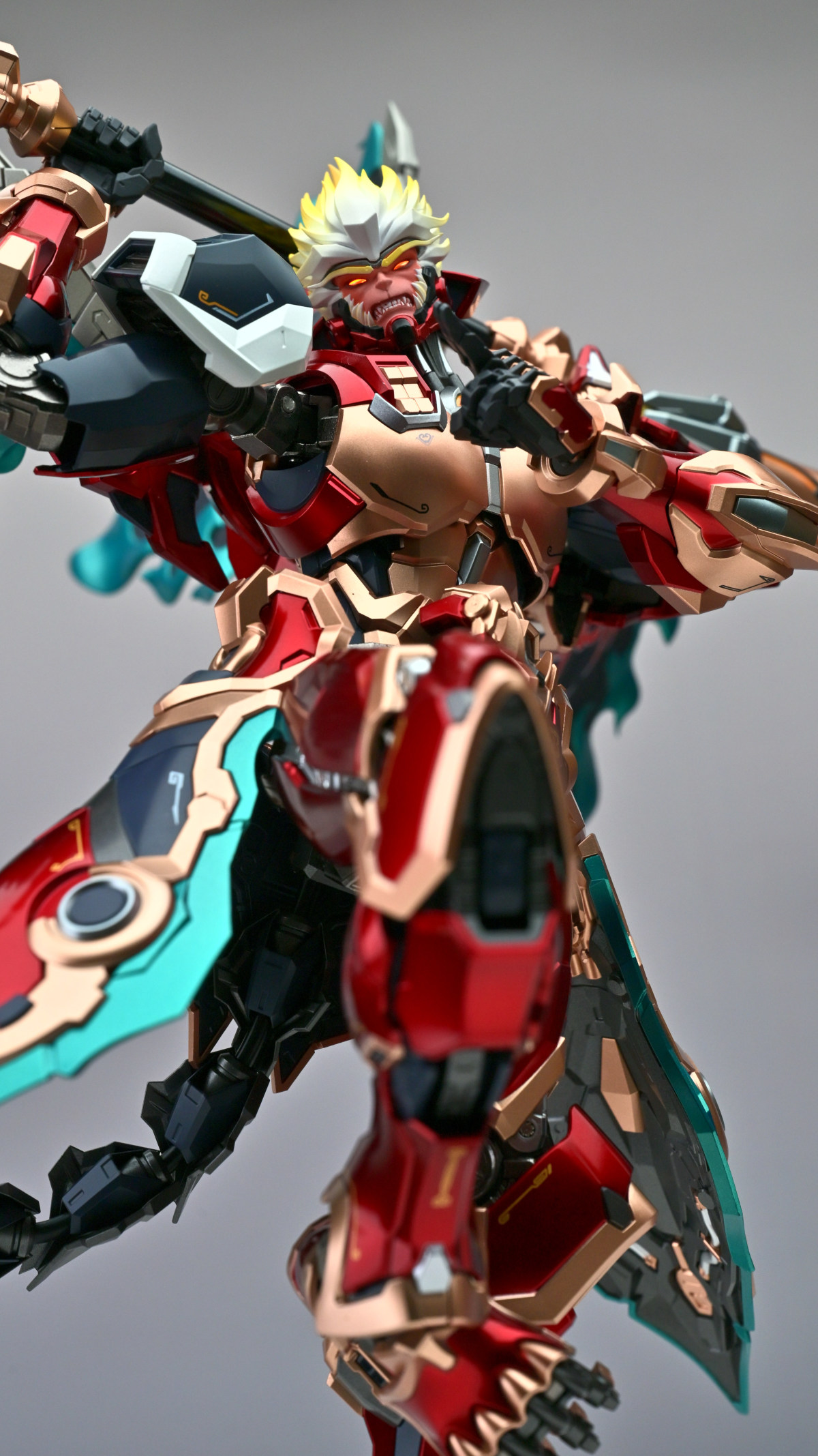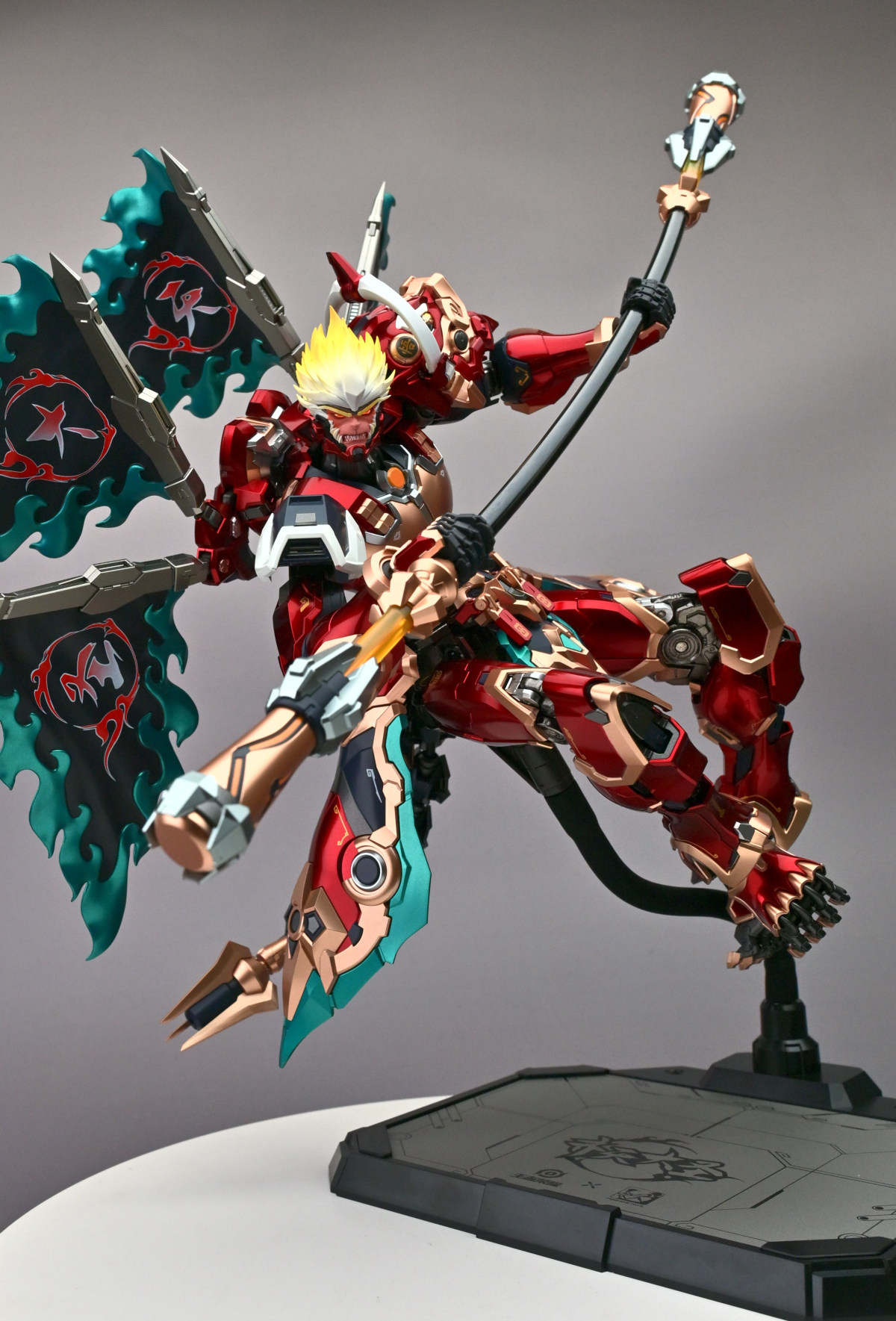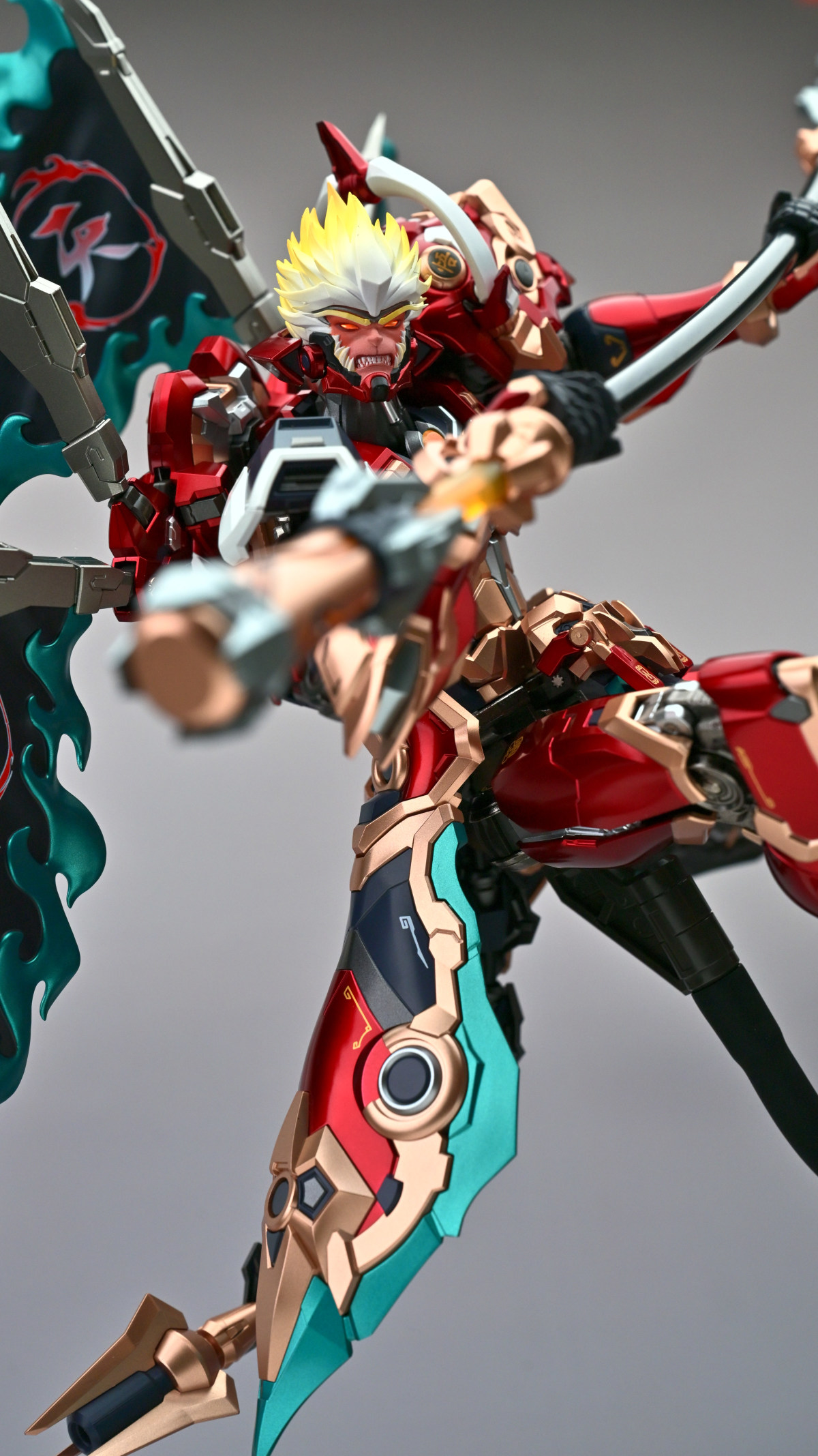 保留了猴子的元素將大家印象中的齊天大聖孫悟空直接機甲化呈現,MOSHOW這間公司在合金玩具上面的領域或許不是最頂的,但是MOSHOW的塗裝和品管可以說是數一數二的天花板等級,買過了甲斐之虎,梵天丸許多由MOSHOW出品的玩具,收藏到目前為止只能說品質真的是沒話說,價位方面也算合理C/P值很高,就把玩的玩具來說真的很超值。
