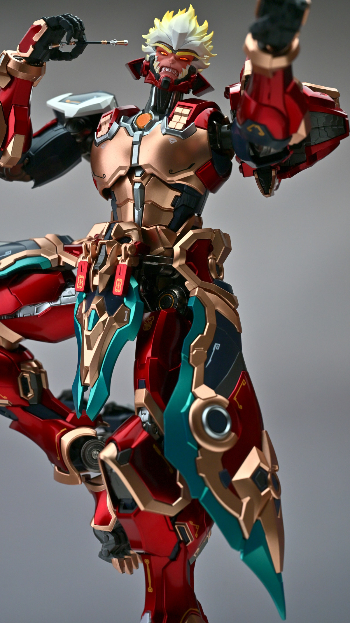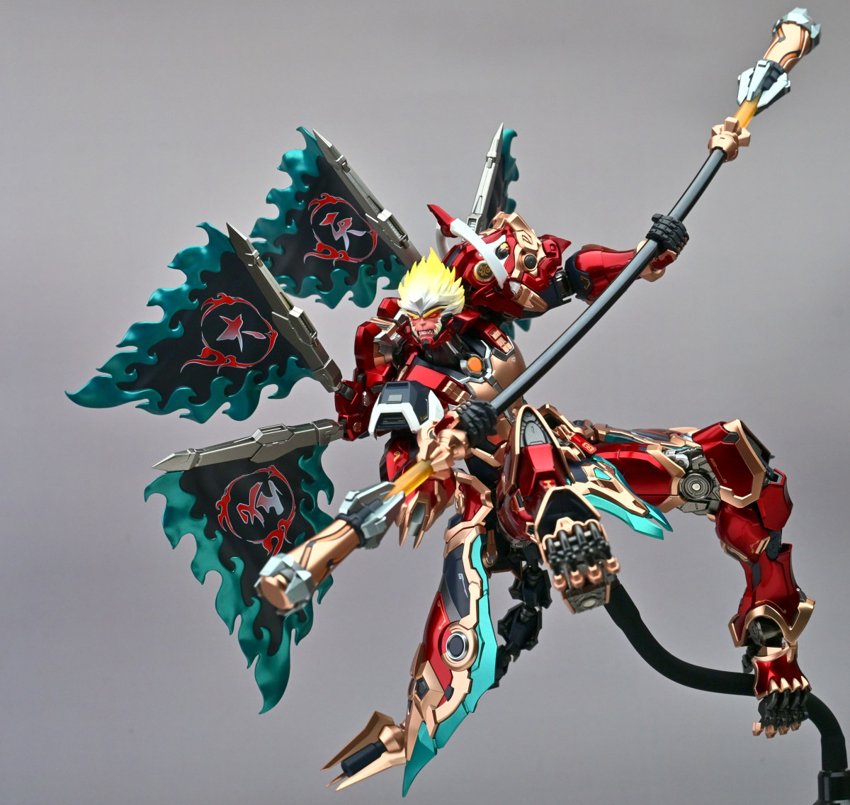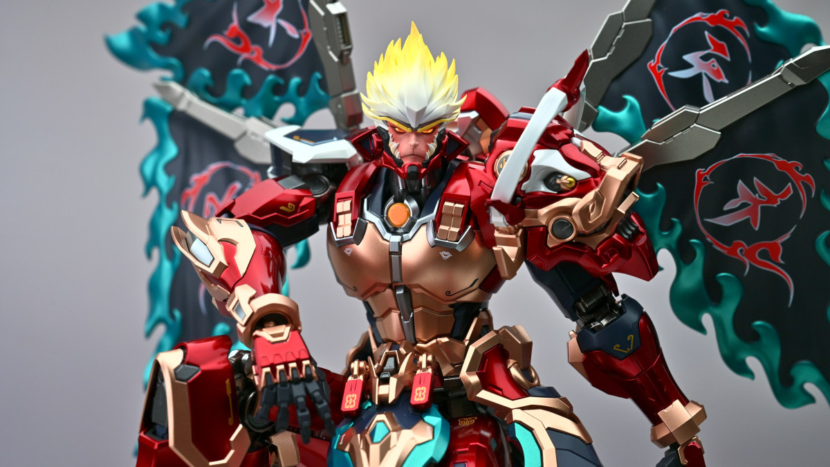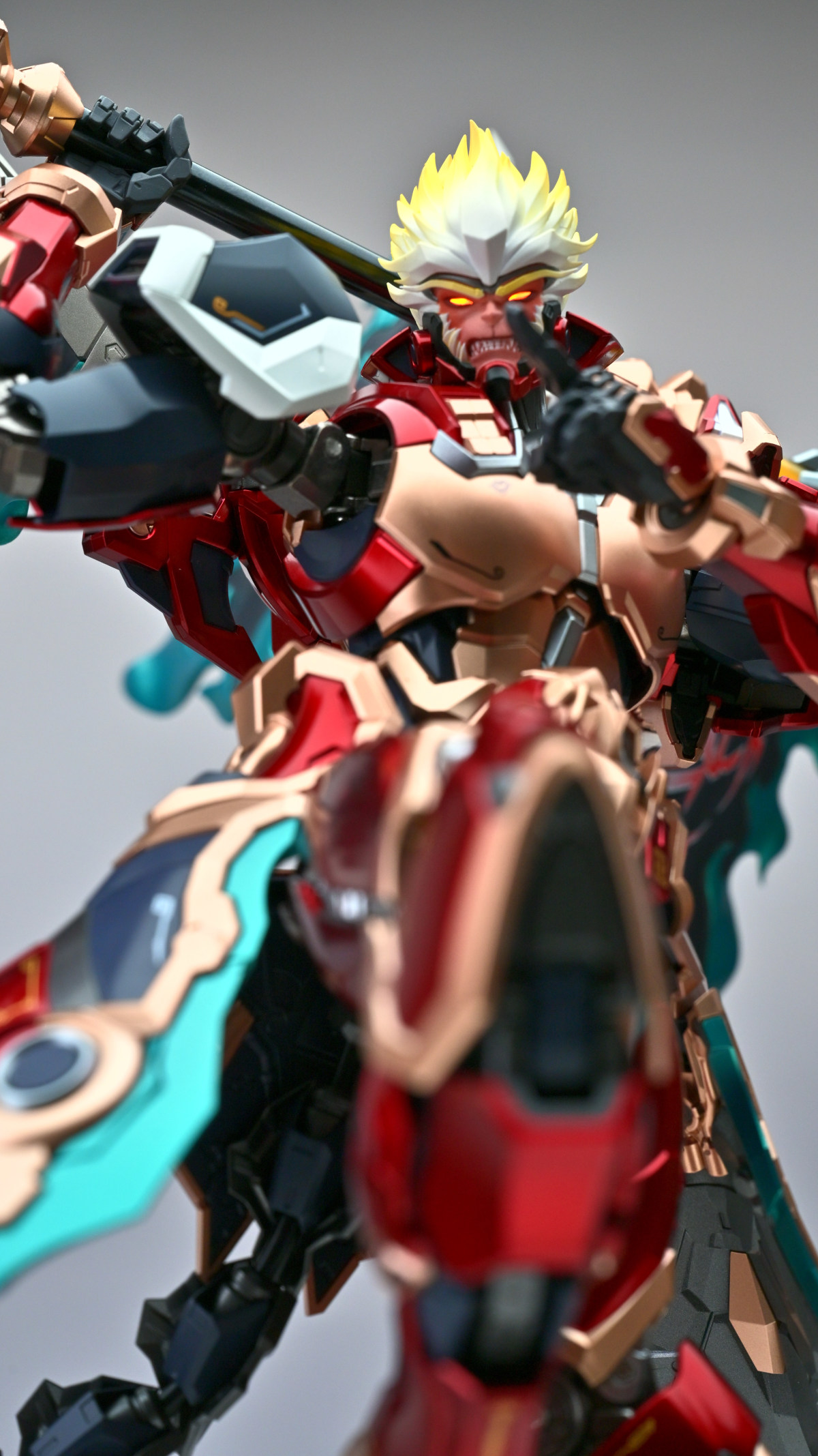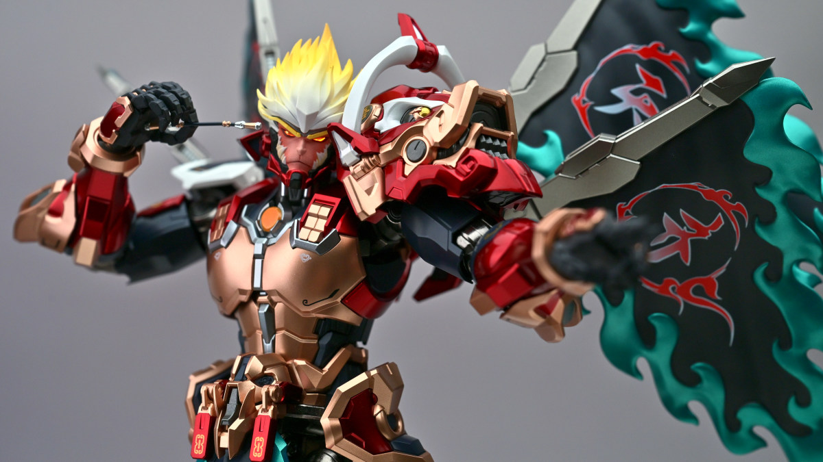 保留了猴子的元素將大家印象中的齊天大聖孫悟空直接機甲化呈現,MOSHOW這間公司在合金玩具上面的領域或許不是最頂的,但是MOSHOW的塗裝和品管可以說是數一數二的天花板等級,買過了甲斐之虎,梵天丸許多由MOSHOW出品的玩具,收藏到目前為止只能說品質真的是沒話說,價位方面也算合理C/P值很高,就把玩的玩具來說真的很超值。