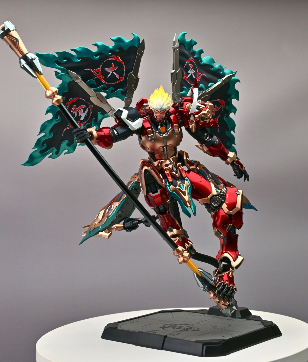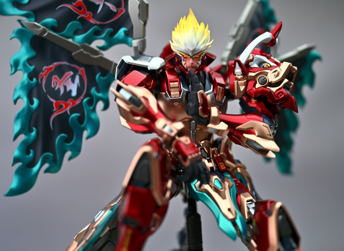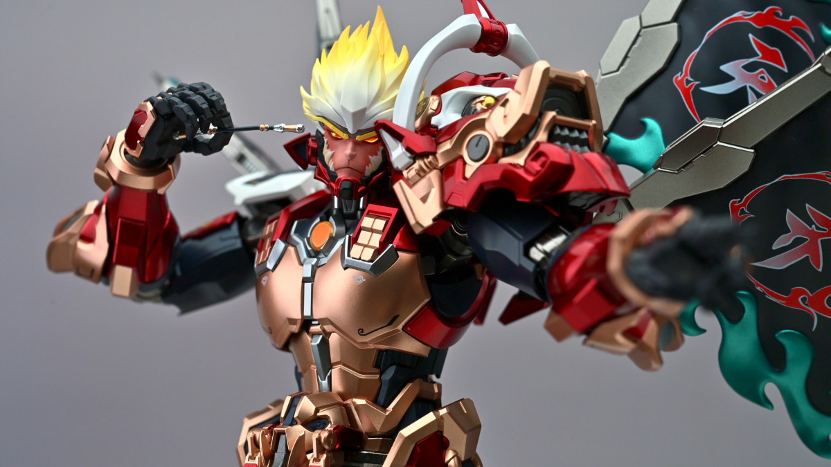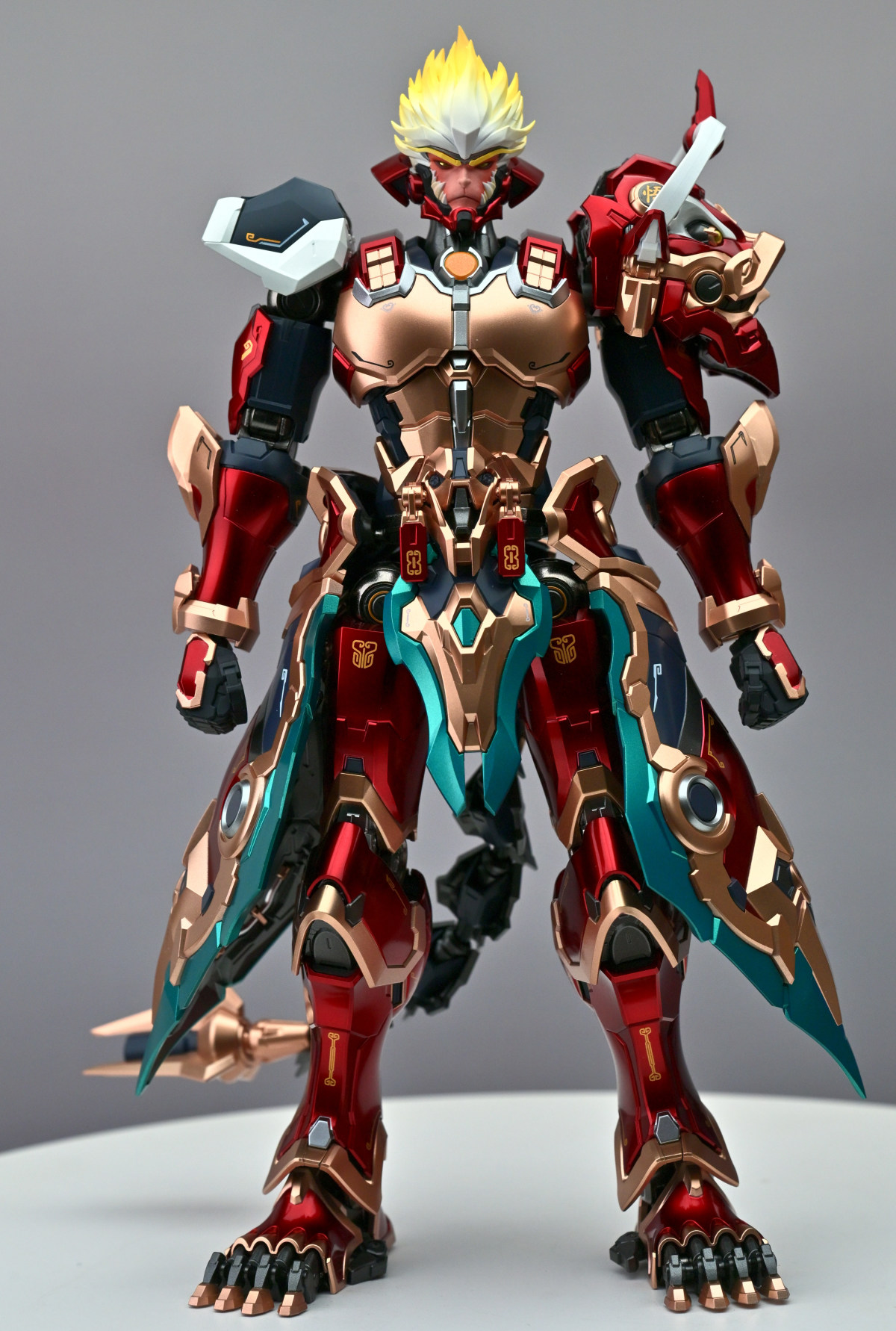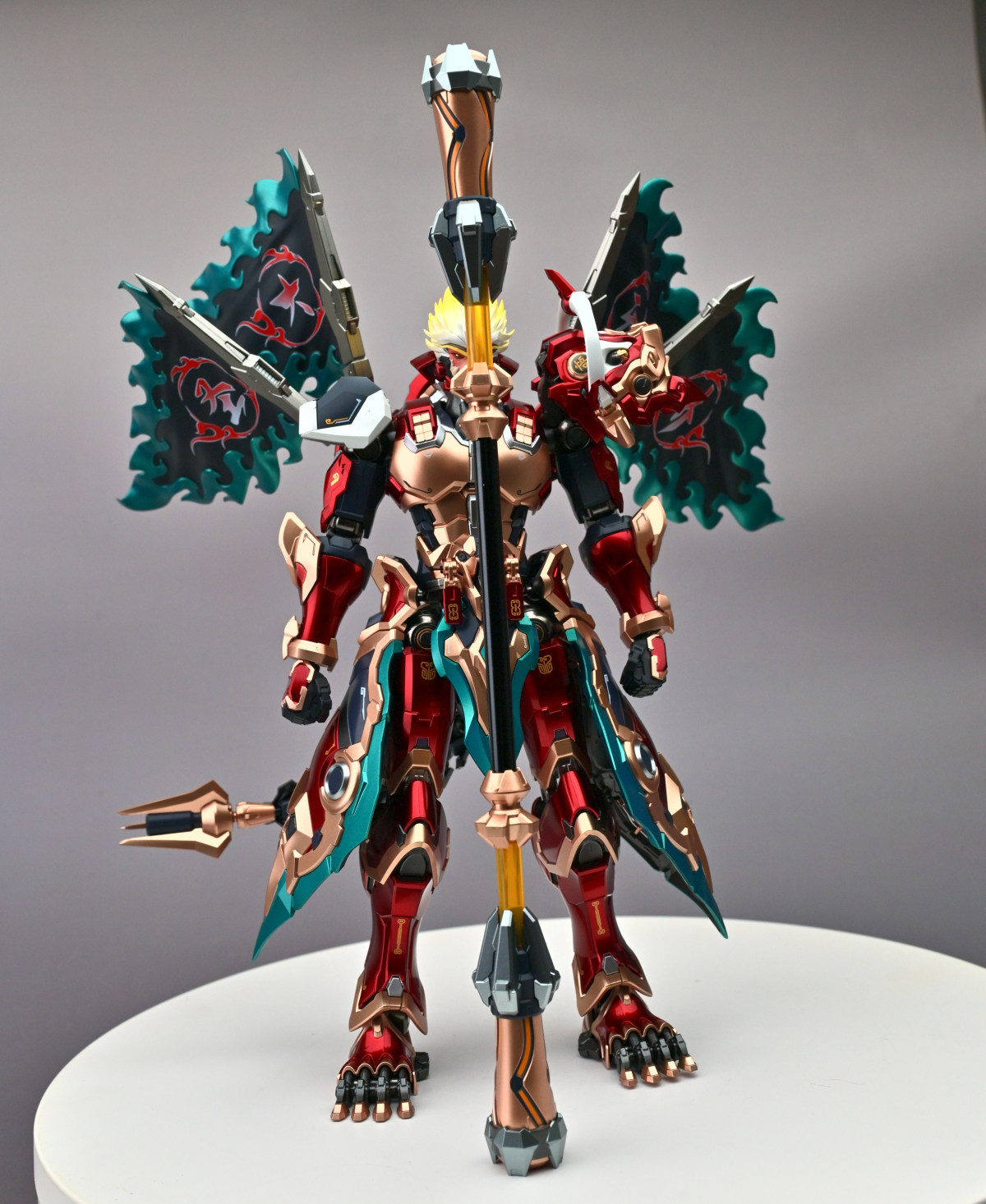 保留了猴子的元素將大家印象中的齊天大聖孫悟空直接機甲化呈現,MOSHOW這間公司在合金玩具上面的領域或許不是最頂的,但是MOSHOW的塗裝和品管可以說是數一數二的天花板等級,買過了甲斐之虎,梵天丸許多由MOSHOW出品的玩具,收藏到目前為止只能說品質真的是沒話說,價位方面也算合理C/P值很高,就把玩的玩具來說真的很超值。