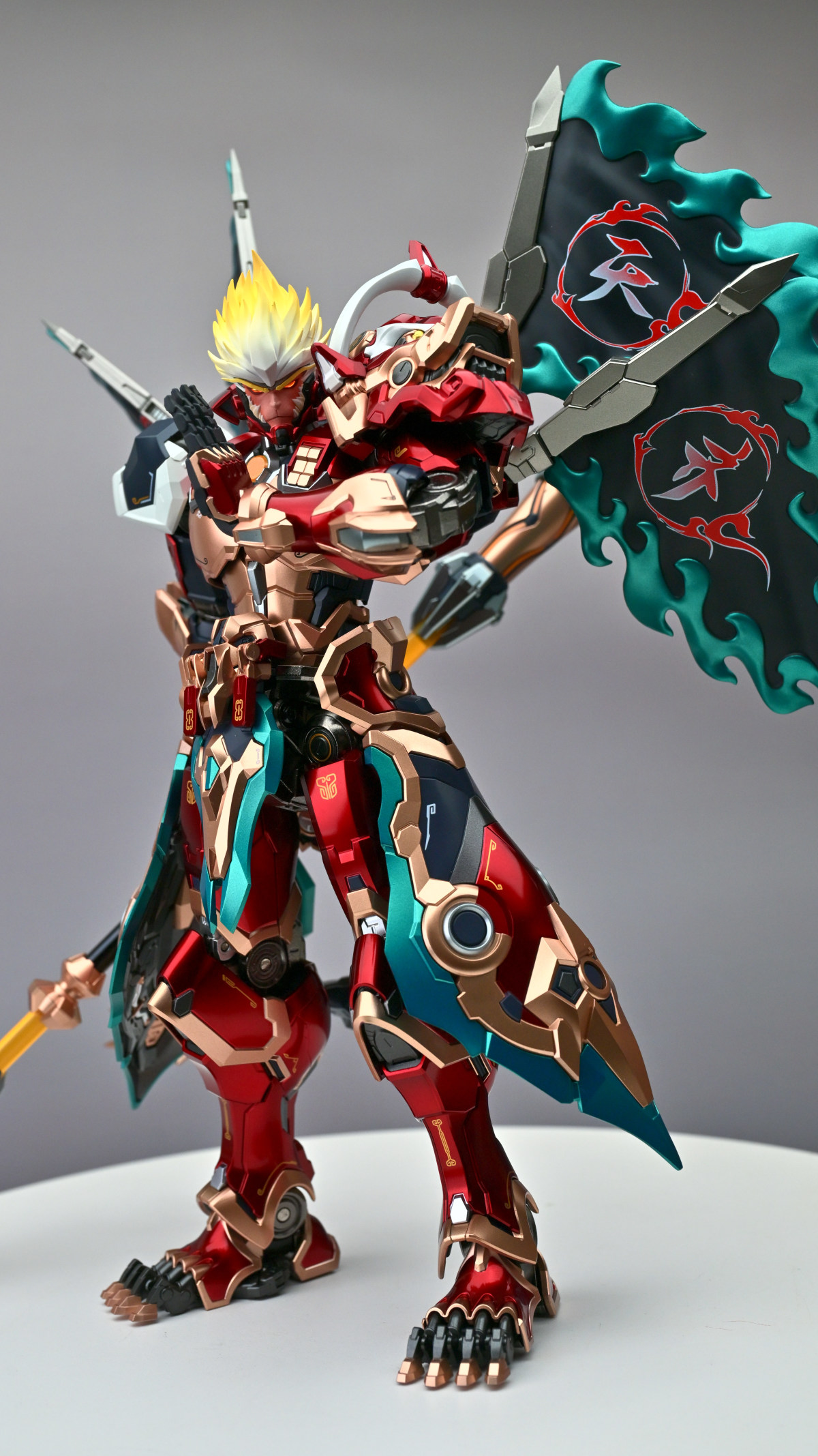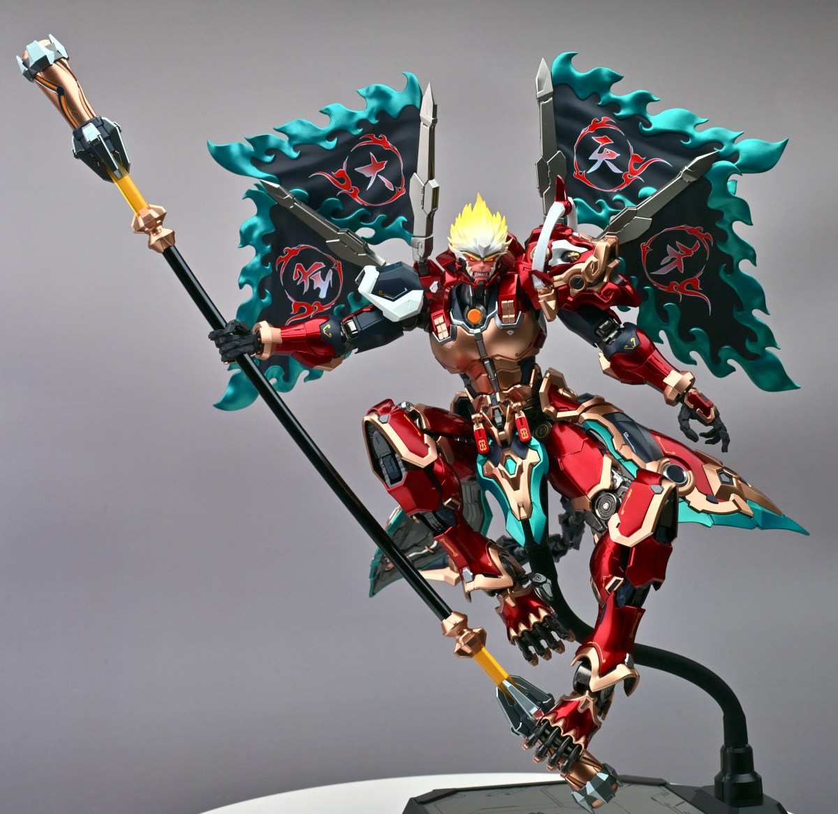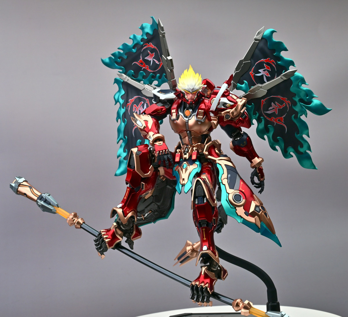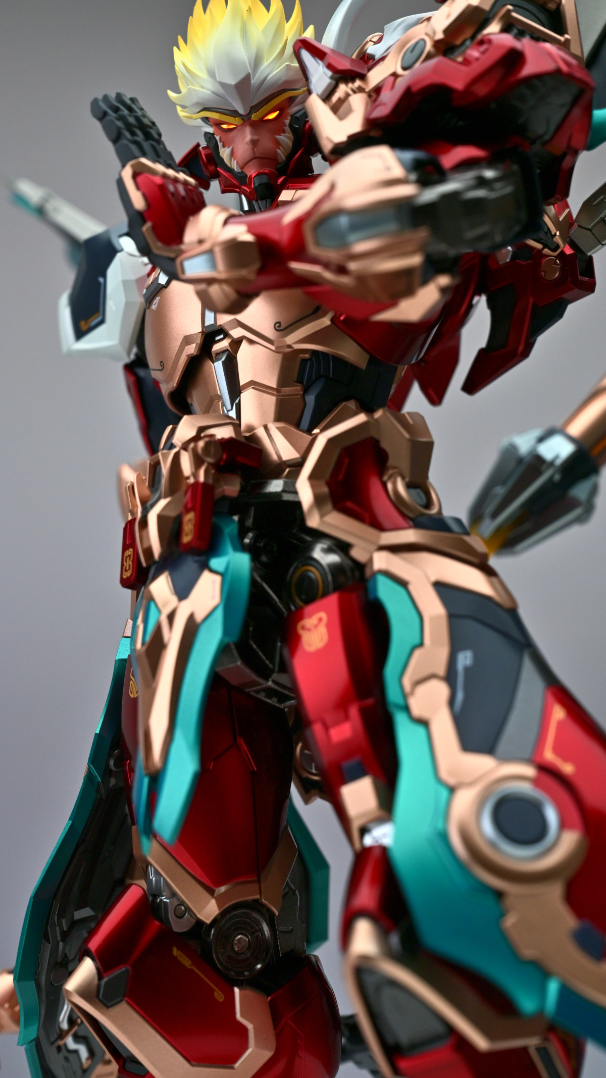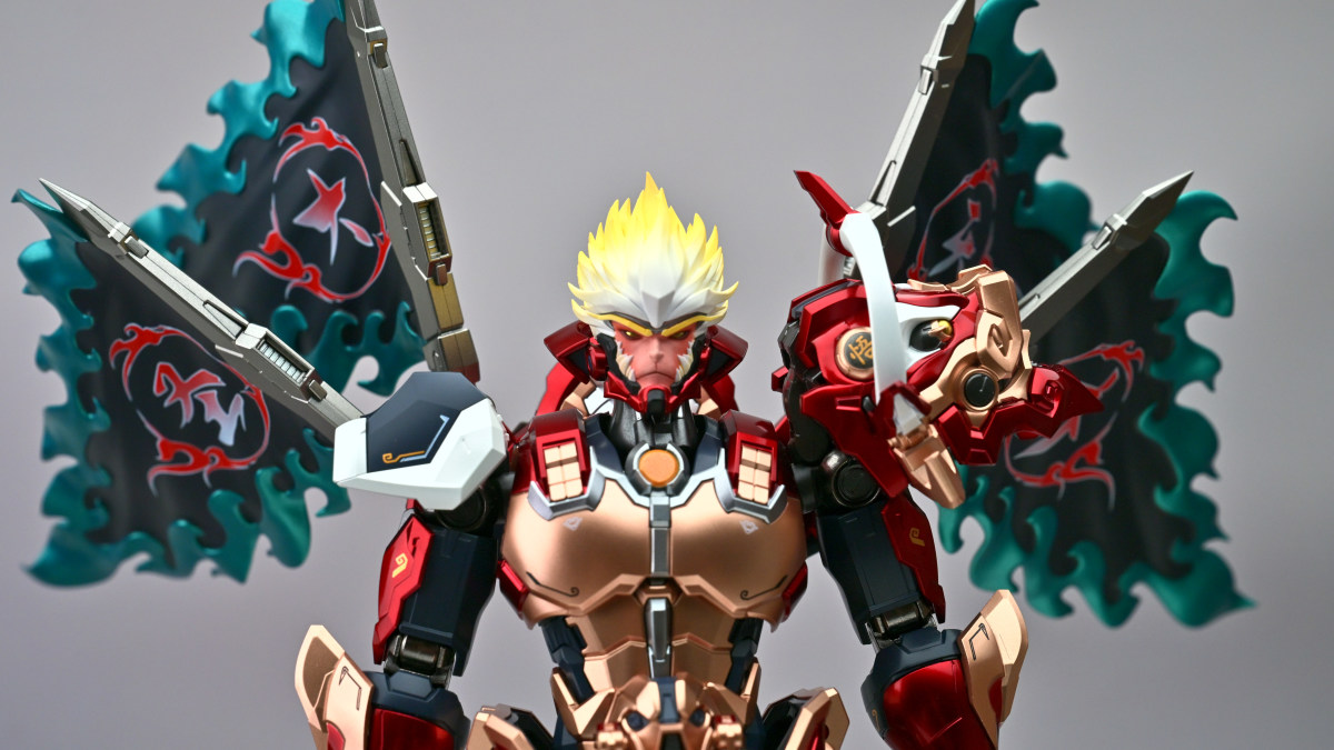保留了猴子的元素將大家印象中的齊天大聖孫悟空直接機甲化呈現,MOSHOW這間公司在合金玩具上面的領域或許不是最頂的,但是MOSHOW的塗裝和品管可以說是數一數二的天花板等級,買過了甲斐之虎,梵天丸許多由MOSHOW出品的玩具,收藏到目前為止只能說品質真的是沒話說,價位方面也算合理C/P值很高,就把玩的玩具來說真的很超值。