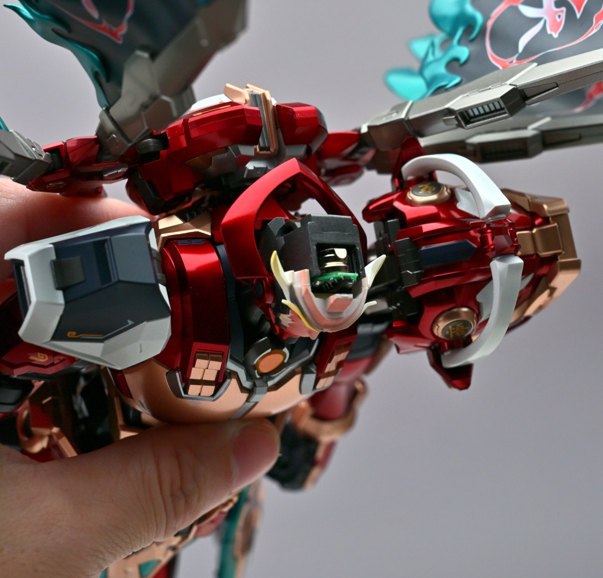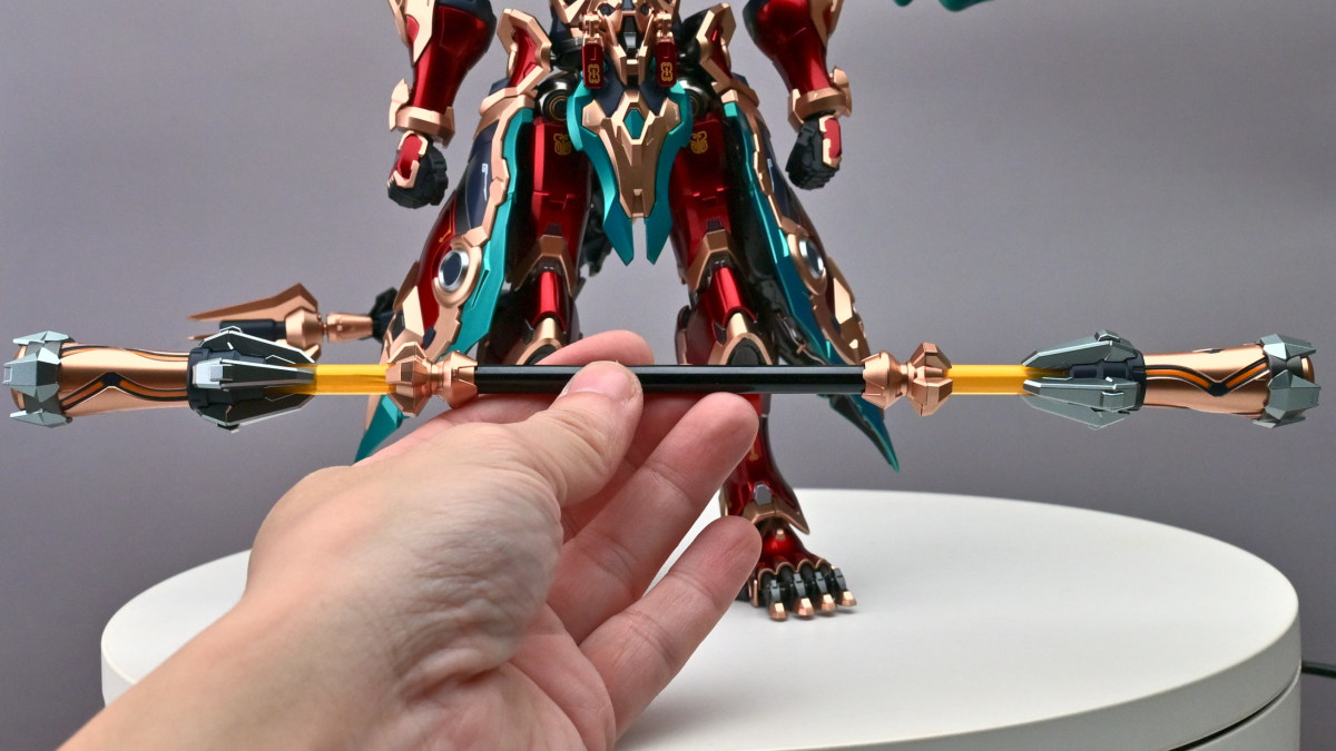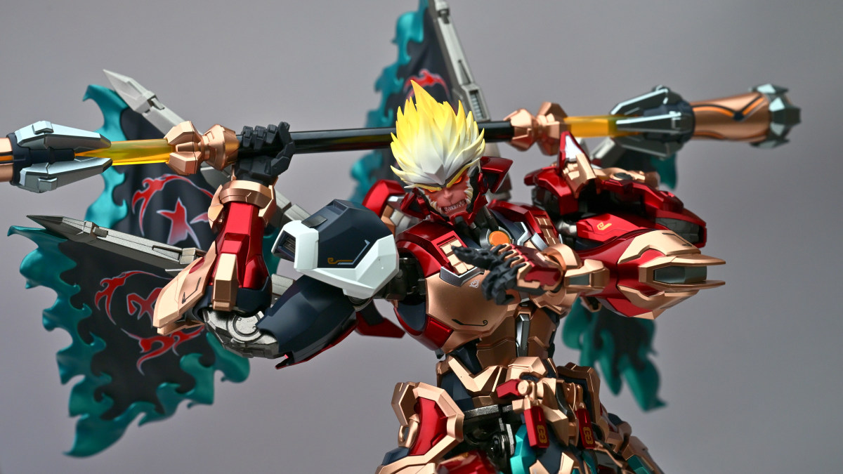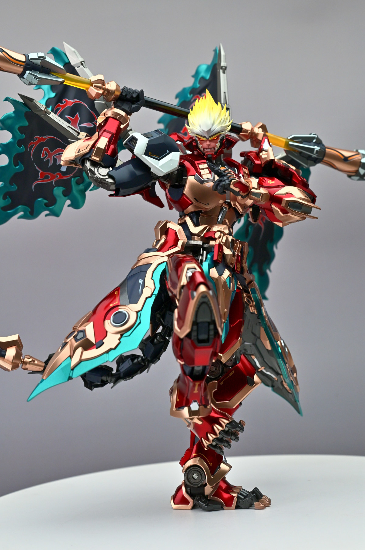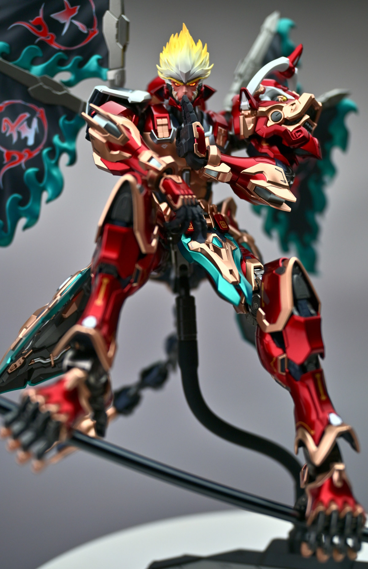 保留了猴子的元素將大家印象中的齊天大聖孫悟空直接機甲化呈現,MOSHOW這間公司在合金玩具上面的領域或許不是最頂的,但是MOSHOW的塗裝和品管可以說是數一數二的天花板等級,買過了甲斐之虎,梵天丸許多由MOSHOW出品的玩具,收藏到目前為止只能說品質真的是沒話說,價位方面也算合理C/P值很高,就把玩的玩具來說真的很超值。