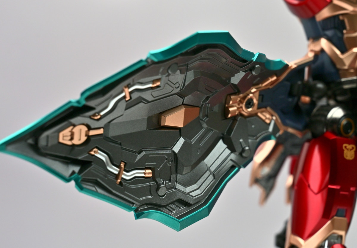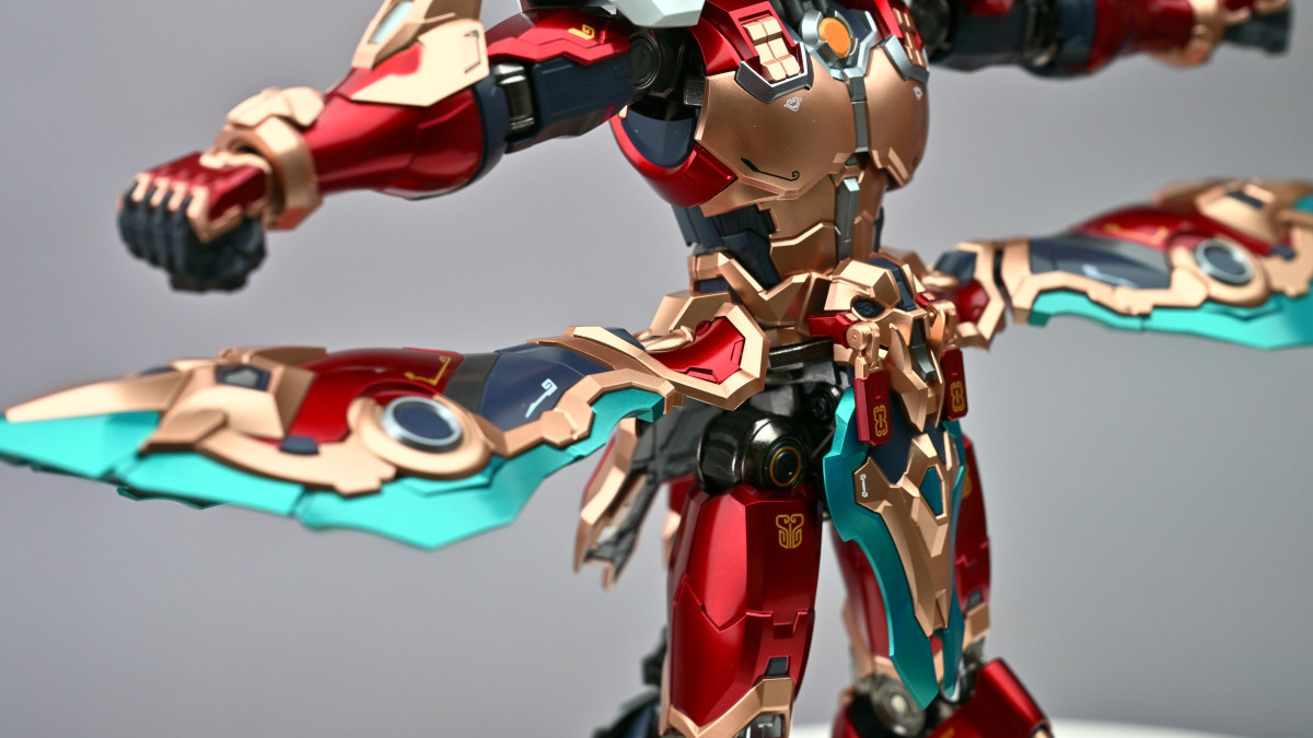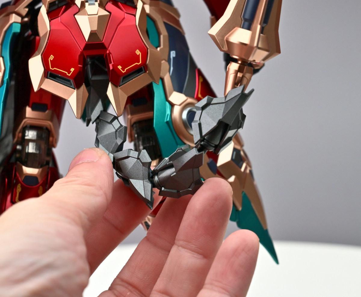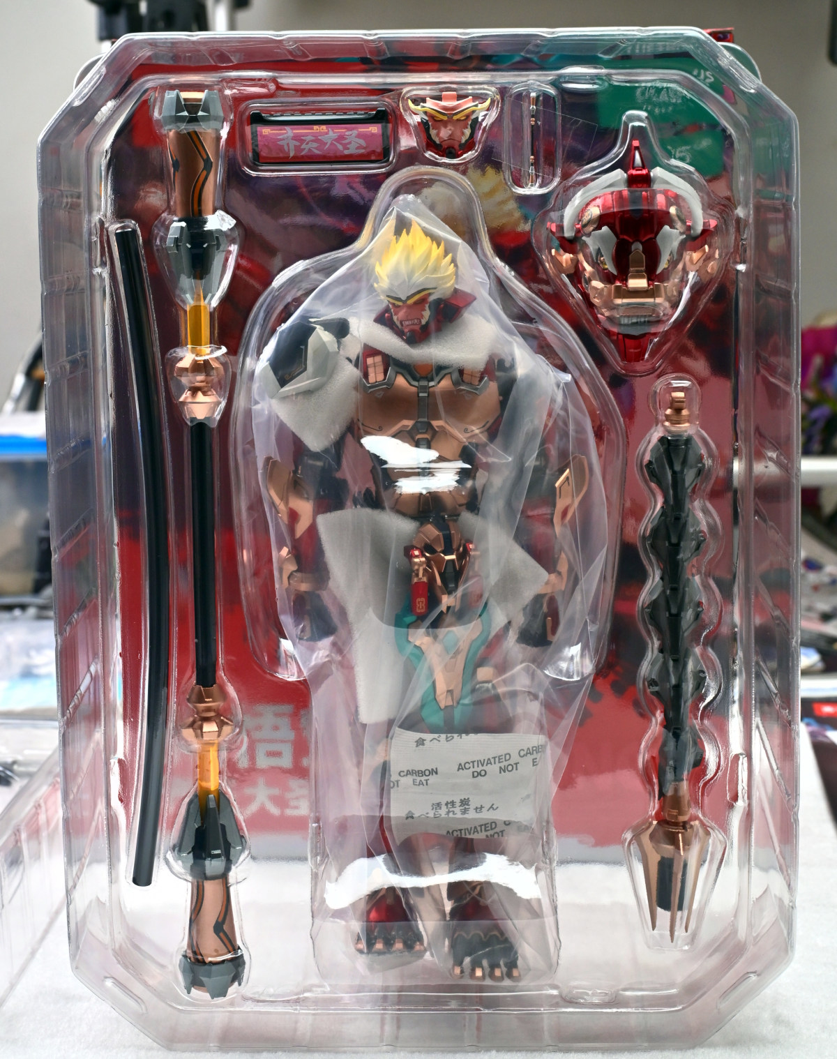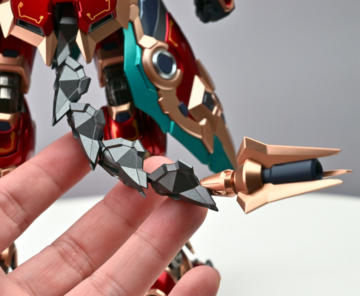 保留了猴子的元素將大家印象中的齊天大聖孫悟空直接機甲化呈現,MOSHOW這間公司在合金玩具上面的領域或許不是最頂的,但是MOSHOW的塗裝和品管可以說是數一數二的天花板等級,買過了甲斐之虎,梵天丸許多由MOSHOW出品的玩具,收藏到目前為止只能說品質真的是沒話說,價位方面也算合理C/P值很高,就把玩的玩具來說真的很超值。