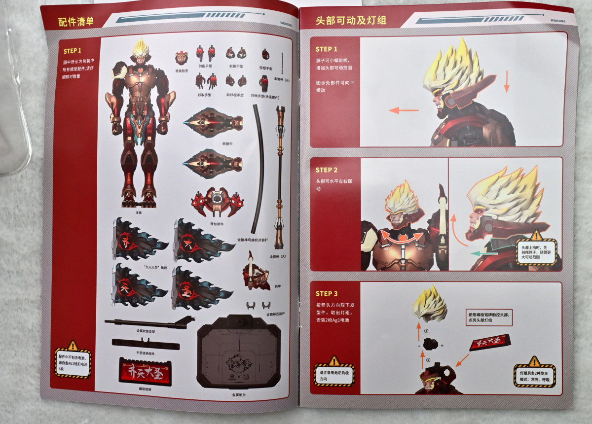 以上就是這次的簡單開箱介紹,比較要注意的大概就是最後一張照片的如意金箍棒很小根很脆弱夾取的時候務必小心,把玩的時候避開干涉部位就不如意刮漆,整體的關節緊實度和金屬成分很足夠可謂是一台不錯的合金,這台總共要用到四顆AG1水銀電池原廠沒附贈需自行購買。