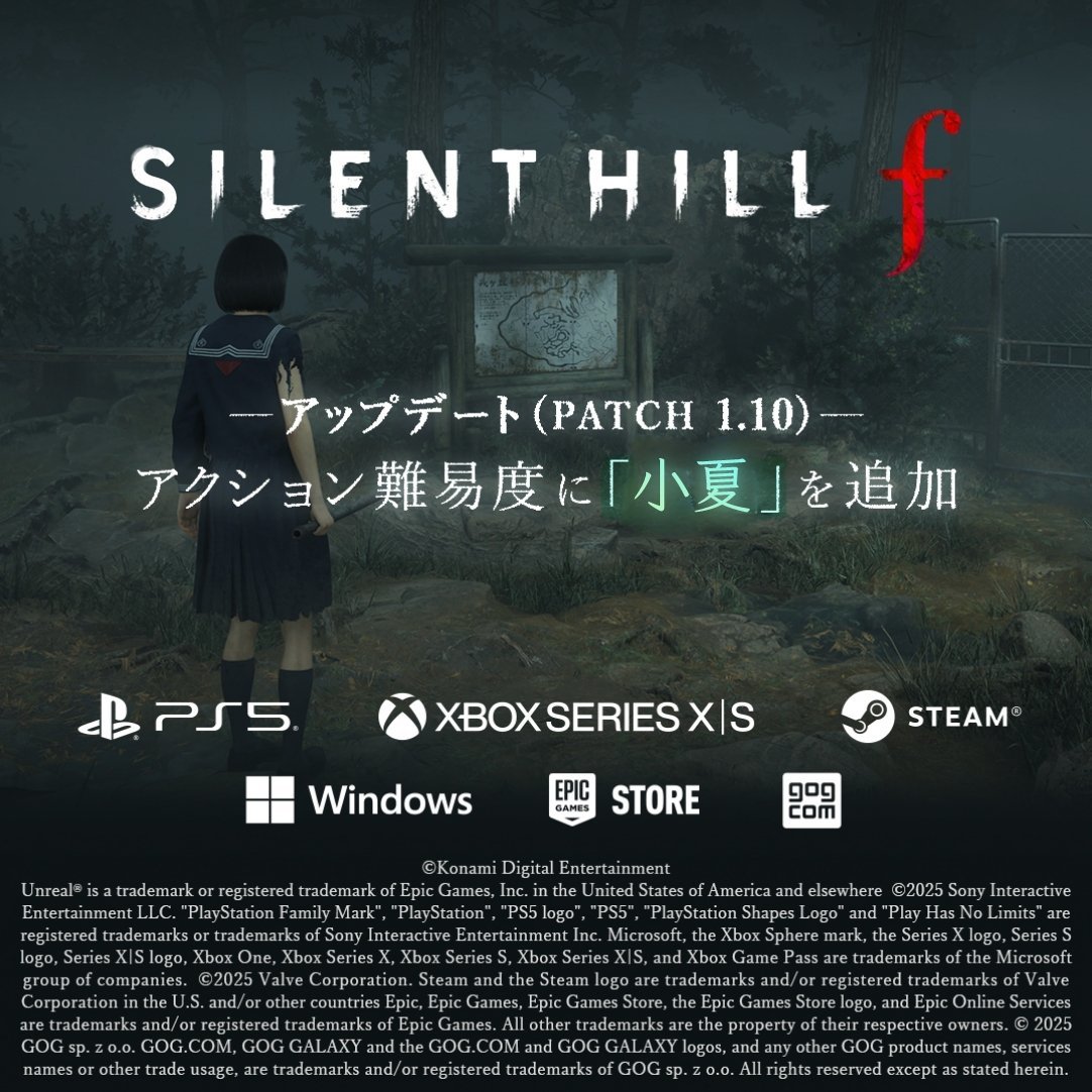 更巧合的是,在加藤小夏求救後沒多久,《沉默之丘》官方 X(前 Twitter)於2025年11月13日 發布公告,正式推出遊戲更新檔Patch 1.10,內容包含全新動作難度「簡單」。此消息一出,讓網友們戲稱根本就是「小夏難度」。