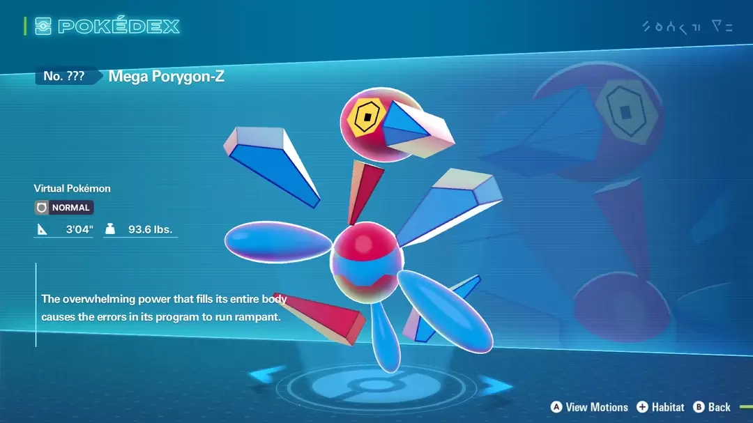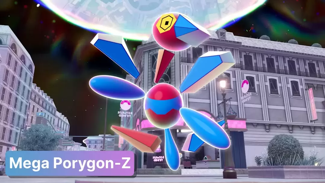 而超級妙喵則結合雄性與雌性的特色,融合尖狀毛束、白色毛皮與多尾造型,使整體氣質更加神秘;至於超級多邊獸Z,則放大其「不穩定能量」的特徵,以漂浮在本體周圍的各式幾何形狀呈現更混亂且難以預測的外觀。