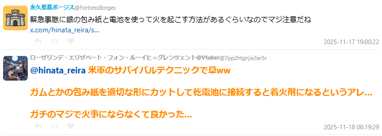 引起關注後,雖然聽起來不可思議,但不少人表示「真的會燒起來」、「以前就有看過用乾電池+鋁箔紙取火的野外技巧」,甚至有人笑說:「你這是把美軍求生教材直接在包包裡實演。」