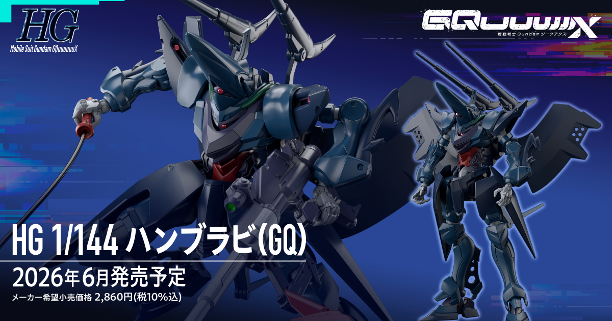 由日本 BANDAI SPIRITS 公司 HOBBY 事業部推出,機體種類最為多樣的 1/144 比例鋼普拉『HG(High Grade)』系列,發表了出自動畫《機動戰士鋼彈GQuuuuuuX》的最新商品「HG 1/144 漢摩拉比(GQ)」預計於 2026 年 06 月發售的消息。