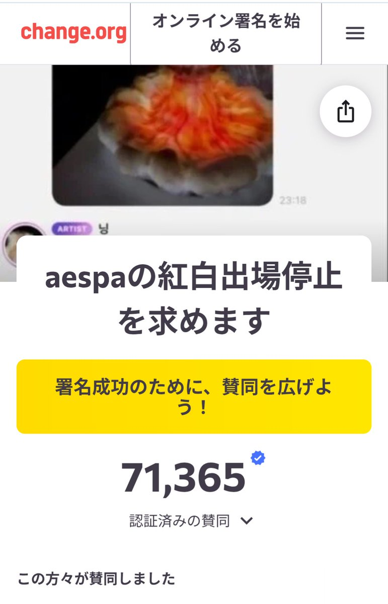 目前聯署取消aespa的數字,也已經高漲到7萬以上,預期數字還會再上升。