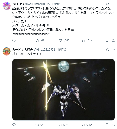 結果底下留言幾乎都是鋼彈粉絲湧入,官方貼文底下狂刷:「主魔!阿格尼·凱耶的靈魂!」、「末日號角的真理就在這裡啊!」、「滿滿都是麥吉利斯,笑死」、「大家都在講鋼彈我真的笑爛」,完全變成鋼彈粉絲聚會現場。