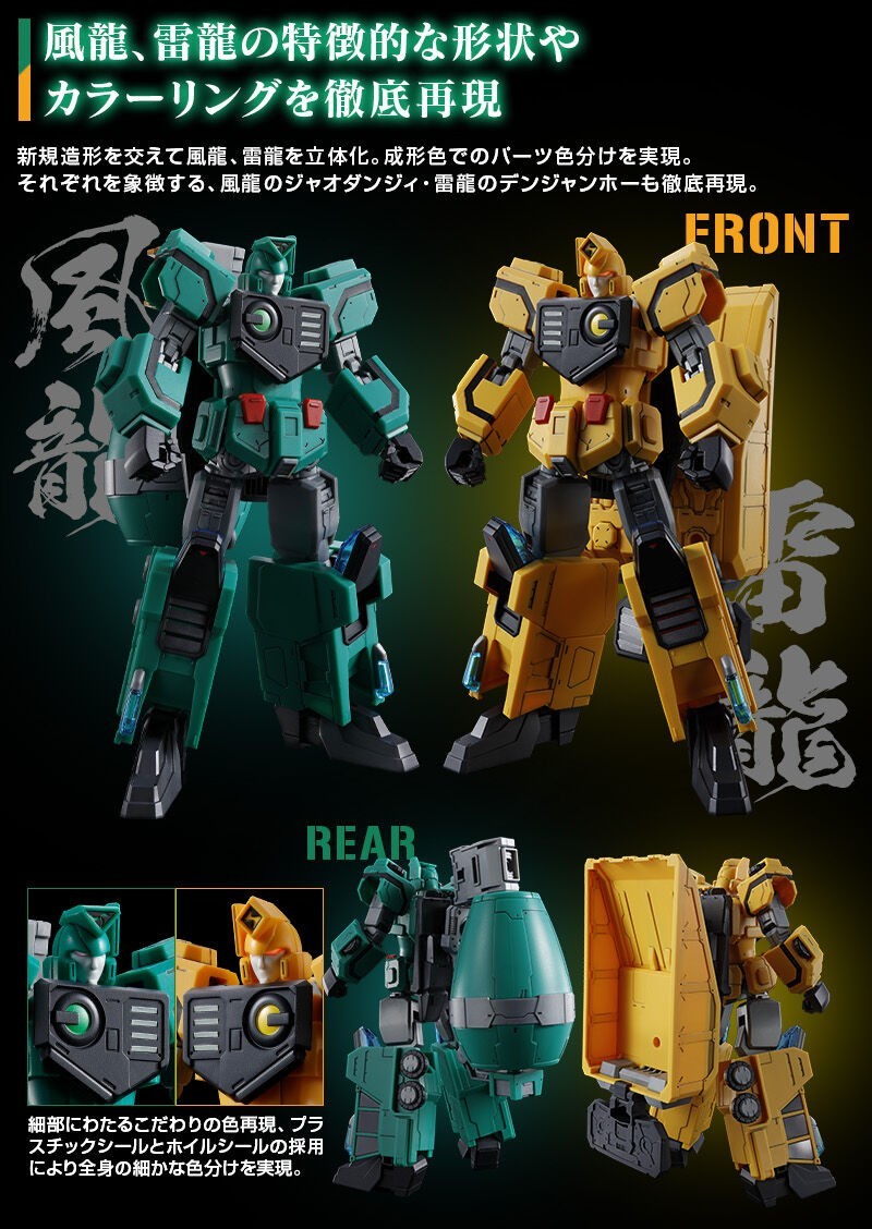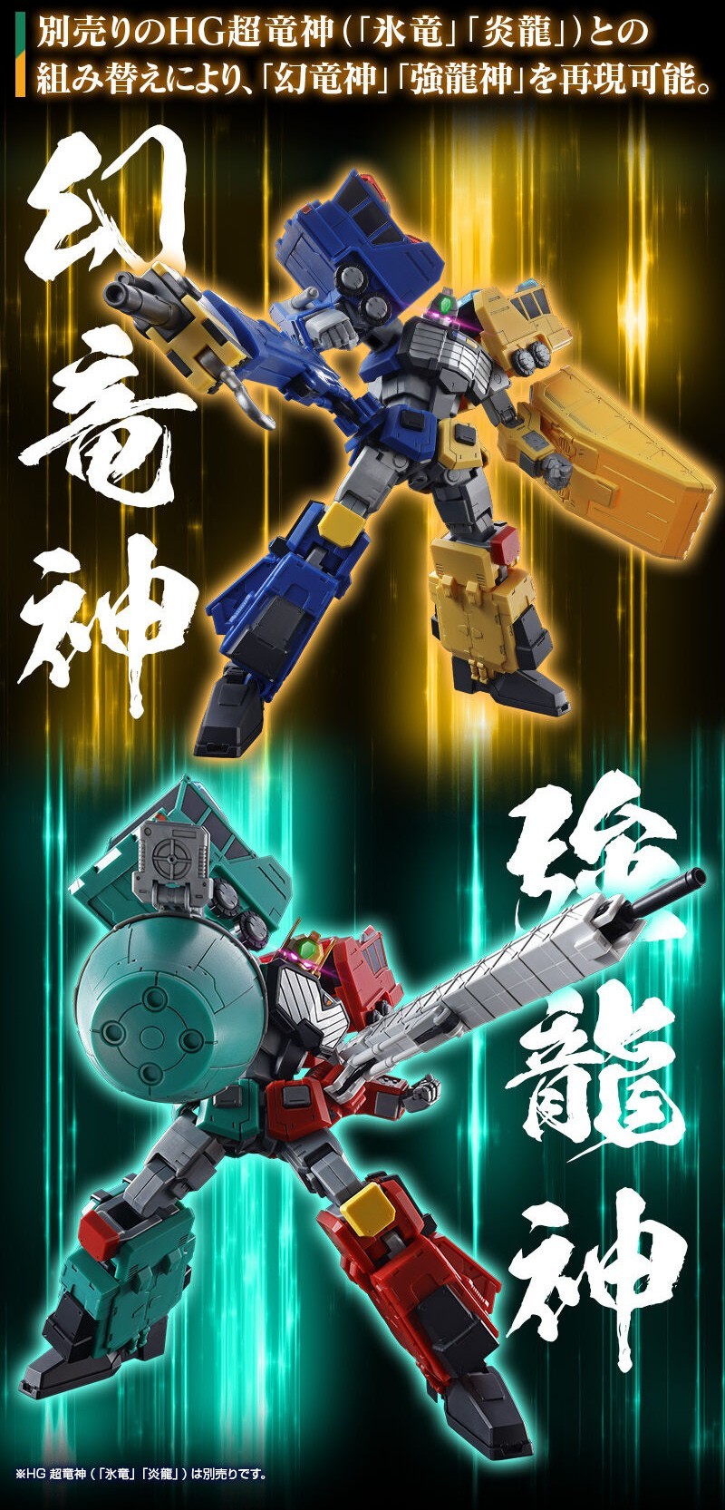 藉由重組零件方式,風龍、雷龍便能再現對稱組合合體後的撃龍神,廣泛的可動範圍,能夠把玩出更接近劇中造型的魄力戰鬥姿態~重現令人難忘的必殺技場景!搭配另售的「HG 超龍神」,可以組合成「幻龍神」與「強龍神」,完成四兄弟的混搭合體!