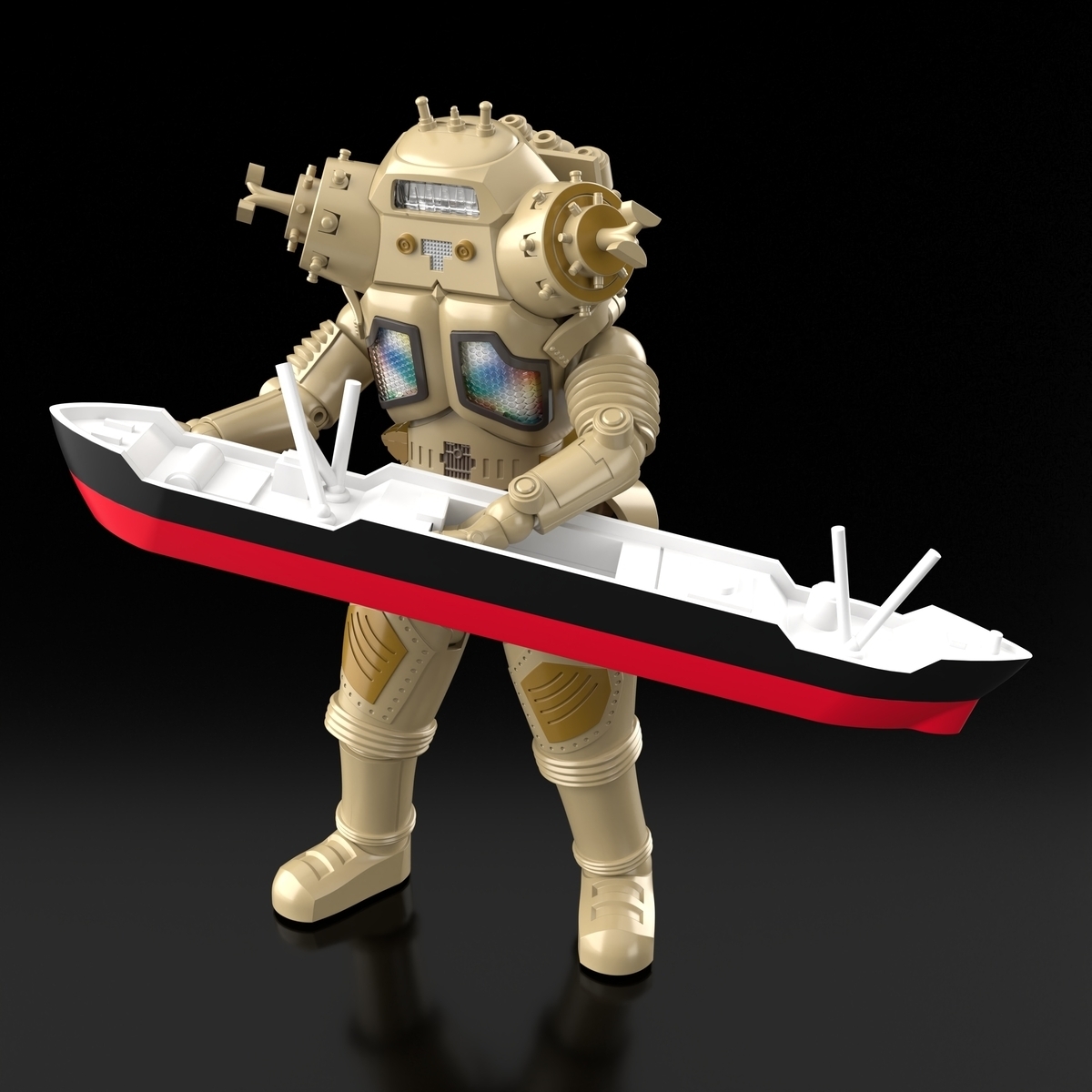 除此之外,附有能與系列商品「SMP [SHOKUGAN MODELING PROJECT] 宇宙機器人 金古喬」一起使用的大型船配件,長度達 16 公分!不僅能單獨展示,還能讓喬王舉起,重現《超人七號》第15集《超級警備隊向西挺進(下)》的經典場面!