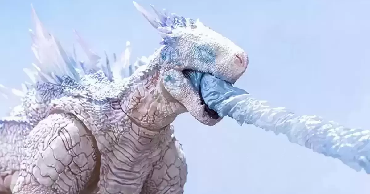 《哥吉拉與金剛:新帝國》中最具威脅性的存在-霜魔(SHIMO),在傳奇宇宙設定中是存活最久的超古代龍形泰坦巨獸,全身都是如霜的潔白,冰晶狀的背鰭透出優雅的藍紫色,擁有能夠讓地球陷入冰河期的強大凍結能力;雖然性格溫和,但從口中吐出的冰霜吐息可是非常兇狠的招式。