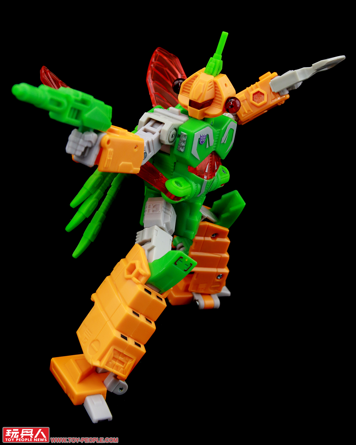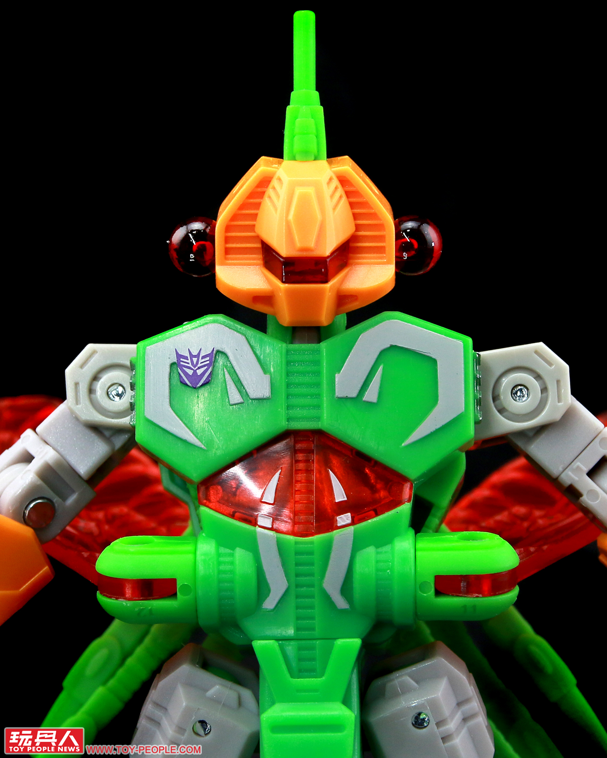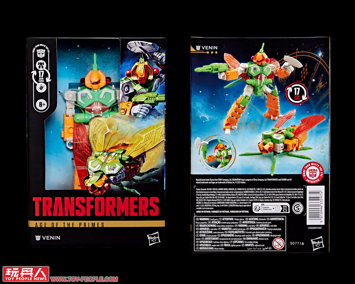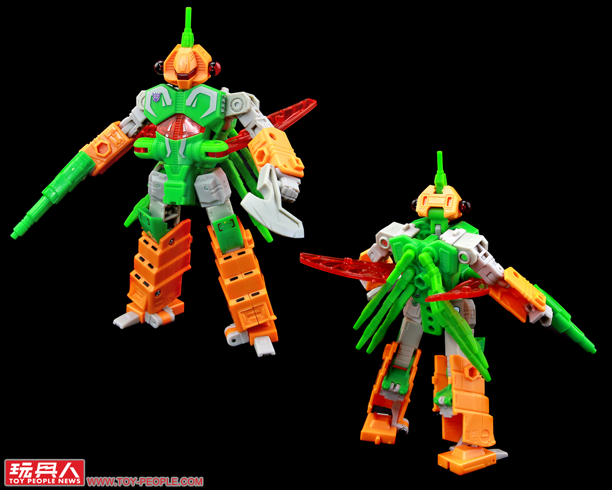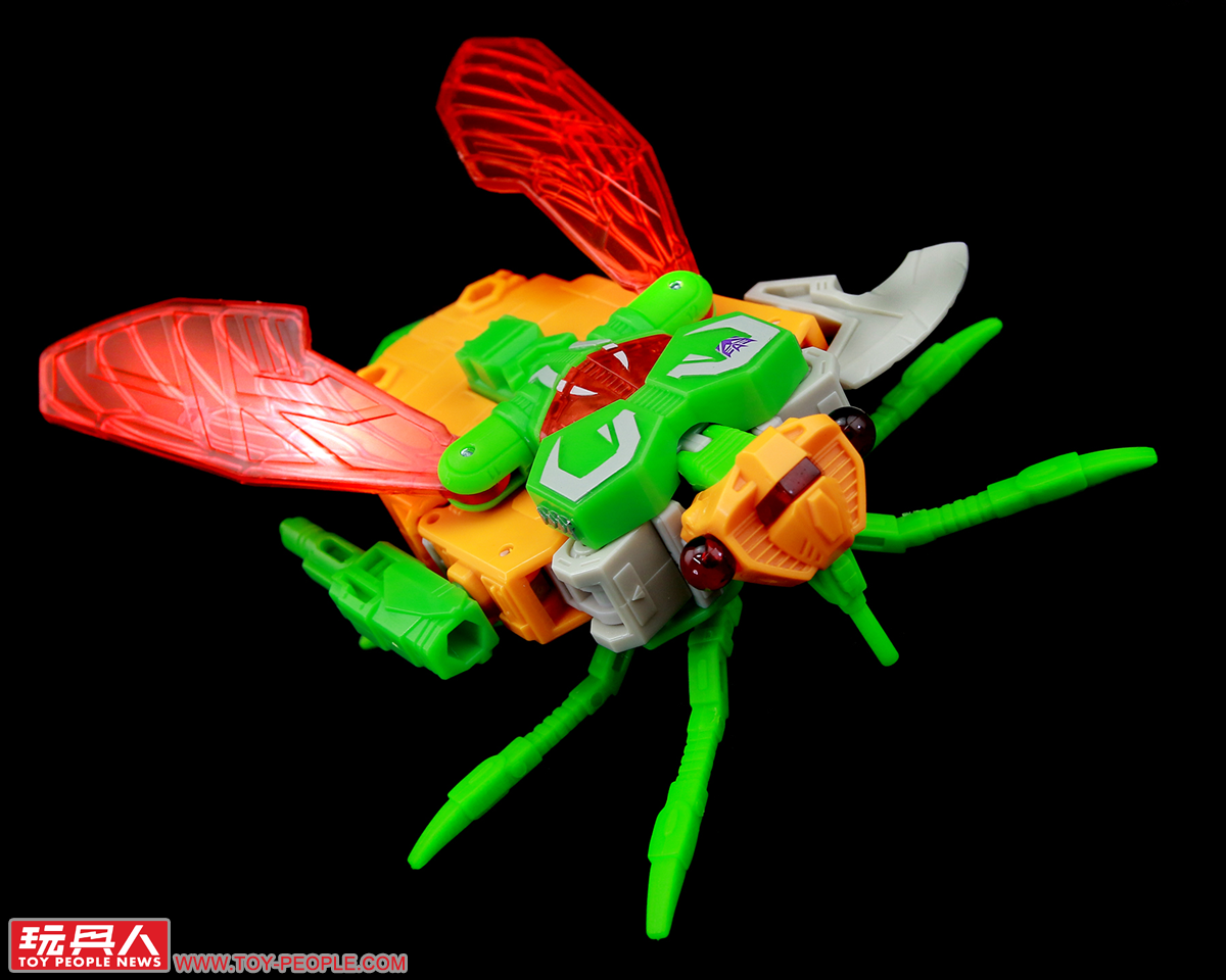▼「毒液」(Venin,為法文的毒液之義,對應角色原始的本名Venom):來自G1的昆蟲金剛(Insecticons),名義上的隊長,對於周遭的同僚總是疑神疑鬼,深怕被人篡位跌落高壇,可變形為機械飛蟬作為偽裝。本次的玩具是繼1985年元祖豪華昆蟲金剛(Deluxe Insecticons)以來,第一次採用完全的新模、以嶄新的設計重新詮釋毒液獨特的外型。