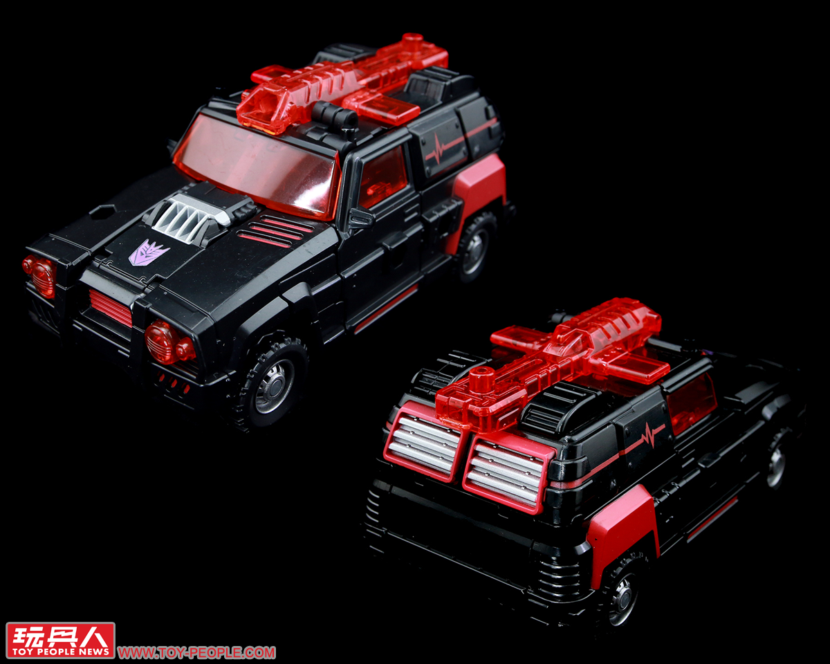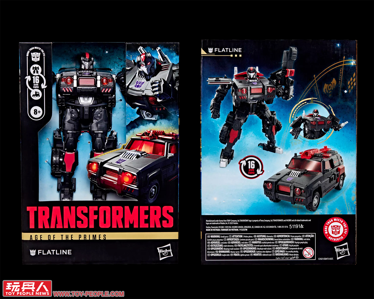 ▼「平線」(Flatline),最初來自IDW的真人電影版漫畫,而後其人物形象被IDW重新建構並加入至G1的漫畫故事線中。平線雖然是狂派的醫護人員,但對於傷患的醫治卻絲毫不計較陣營。本次的玩具採用了早前發售的《變形金剛:艦隊》(Transformers: Armada)版紅色警戒(Red Alert),將配色變更為黑紅色的組合,並附屬多樣的武器零件可供玩家自由搭配選用。