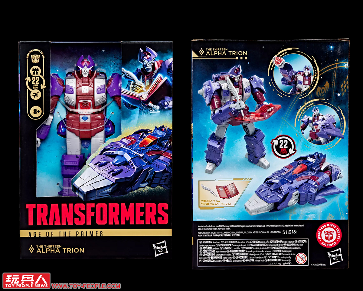 ▼「十三至尊-阿法特利昂」(The Thirteen Alpha-Trion,或譯作鈦師傅),十三至尊中的紀錄者,手持傳奇神器「羽毛筆」(Quill)與「聖約之書」(Covenant Book),將塞博坦(Cybertron)發生的一切盡收書中,他甚至能經由書寫改變未來的發生,可說是命運轉動與歷史洪流的見證者。本次的造型取材自G1動畫中,較為年輕的A-3時期的外貌。