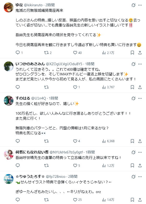 畢竟直接宣布發100萬份,以這個特典的號召力粉絲鐵定再衝戲院一波,距離無限列車篇的 407 億票房也僅差一些距離,粉絲們也相信要突破只是時間的問題了。