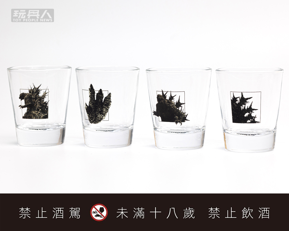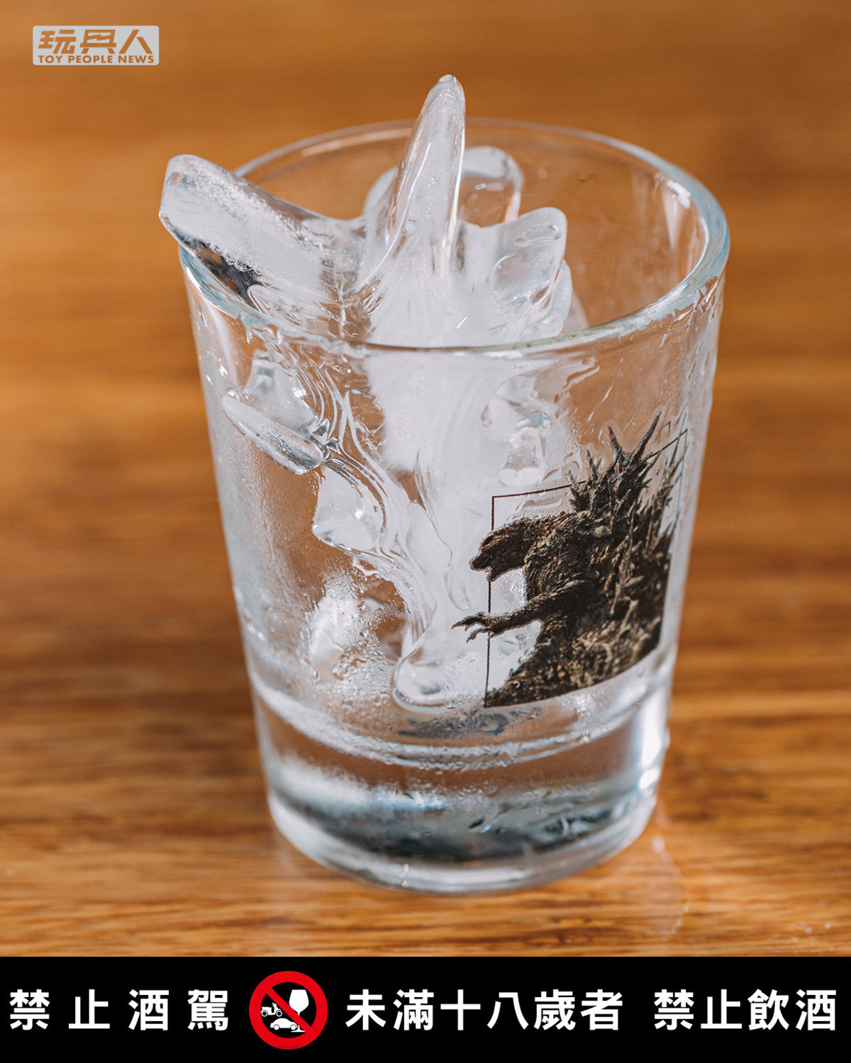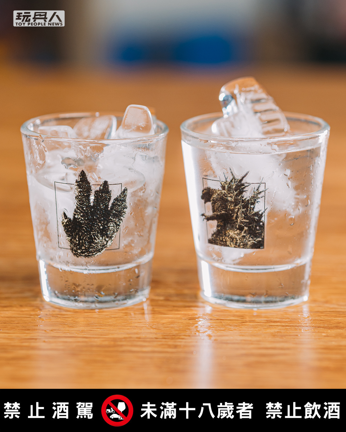 欣賞完兩款哥吉拉酒!我們接著來看看可以讓你的品酒時光變得更帥氣的兩款超讚法寶:「哥吉拉-1.0款・系列酒杯」跟「哥吉拉-1.0款・造型冰塊模」!酒杯一共有四款,除了在杯身飾有哥吉拉的身影、腳掌、背鰭之外,底部也有哥吉拉的英、日文字樣。