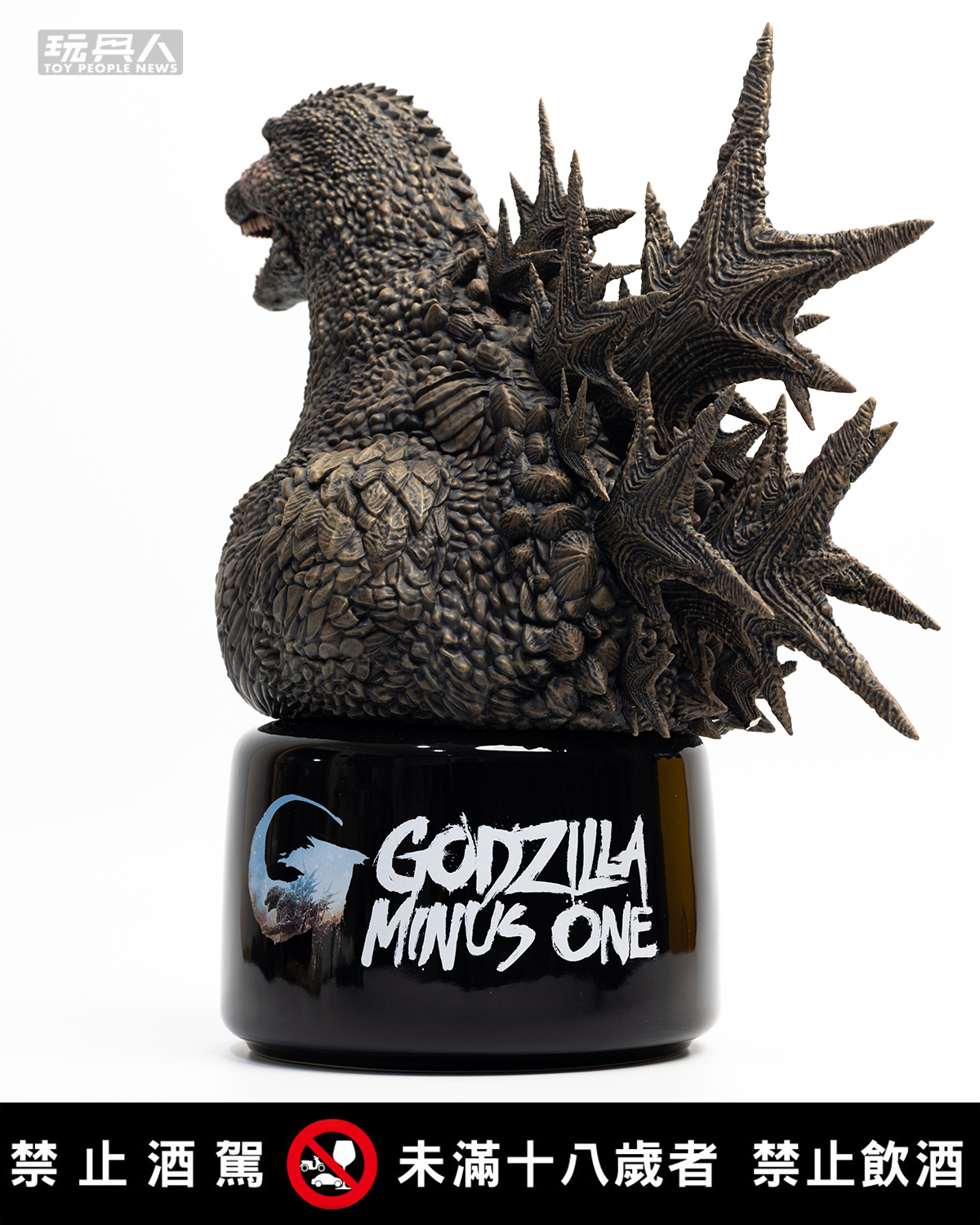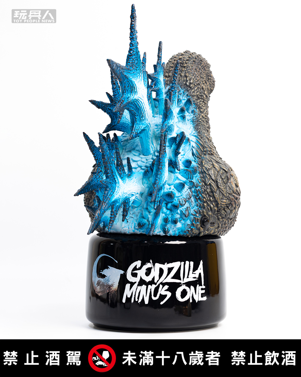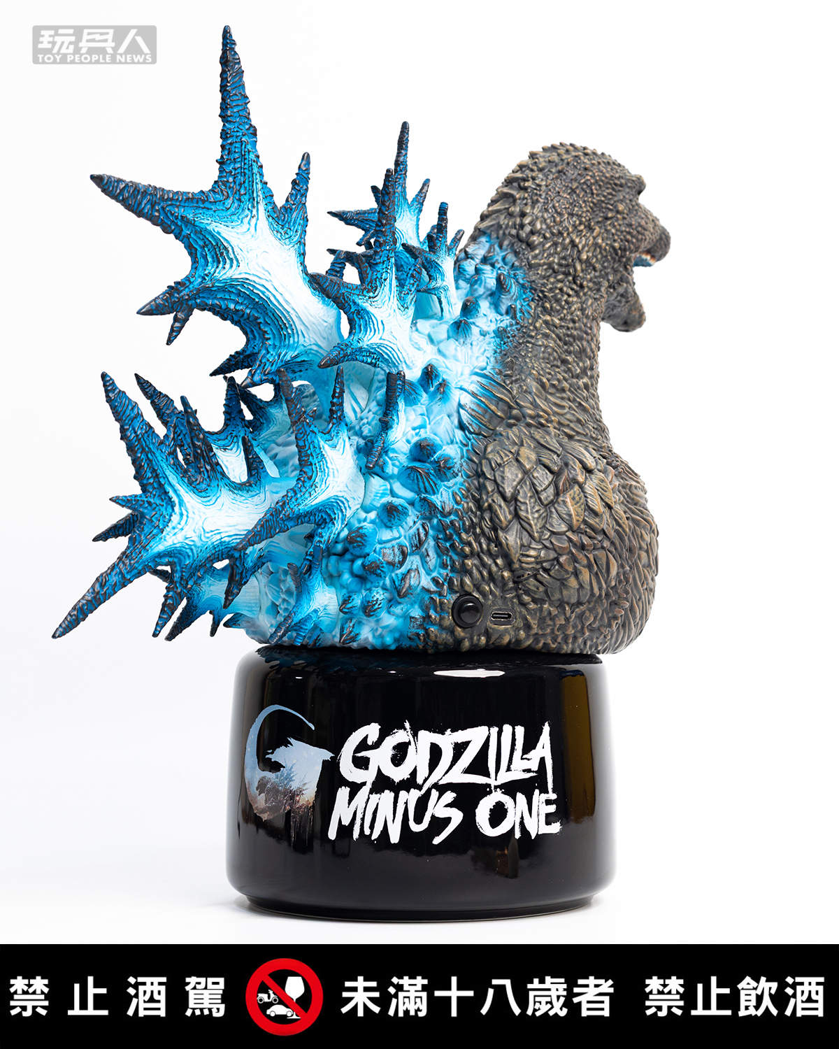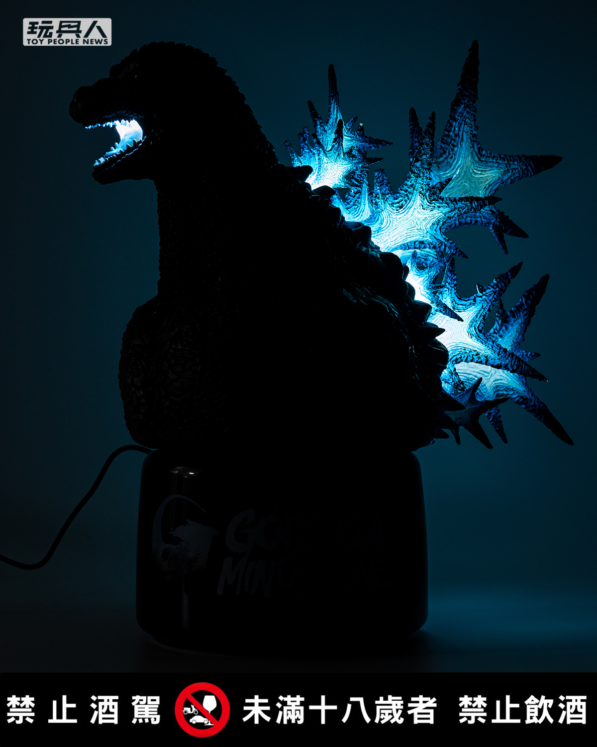 本次鑫羿文創為了回饋死忠粉絲,凡購買本次「哥吉拉系列造型紀念酒-哥吉拉-1.0款・基本版」的玩具人將擁有「哥吉拉-1.0款・熱線版」的限量優先購買權;可如果是先前都錯過的玩具人也不用擔心,現在買都還來得及!購買任一款先前鑫羿文創的哥吉拉系列造型紀念酒,你也能把發光的熱線版本帶回家收藏。那麼,我們就趕快從各個角度看看這次的主角吧。