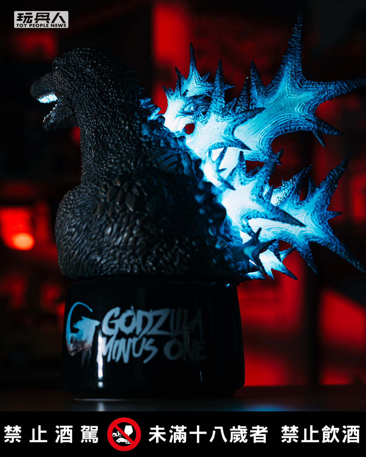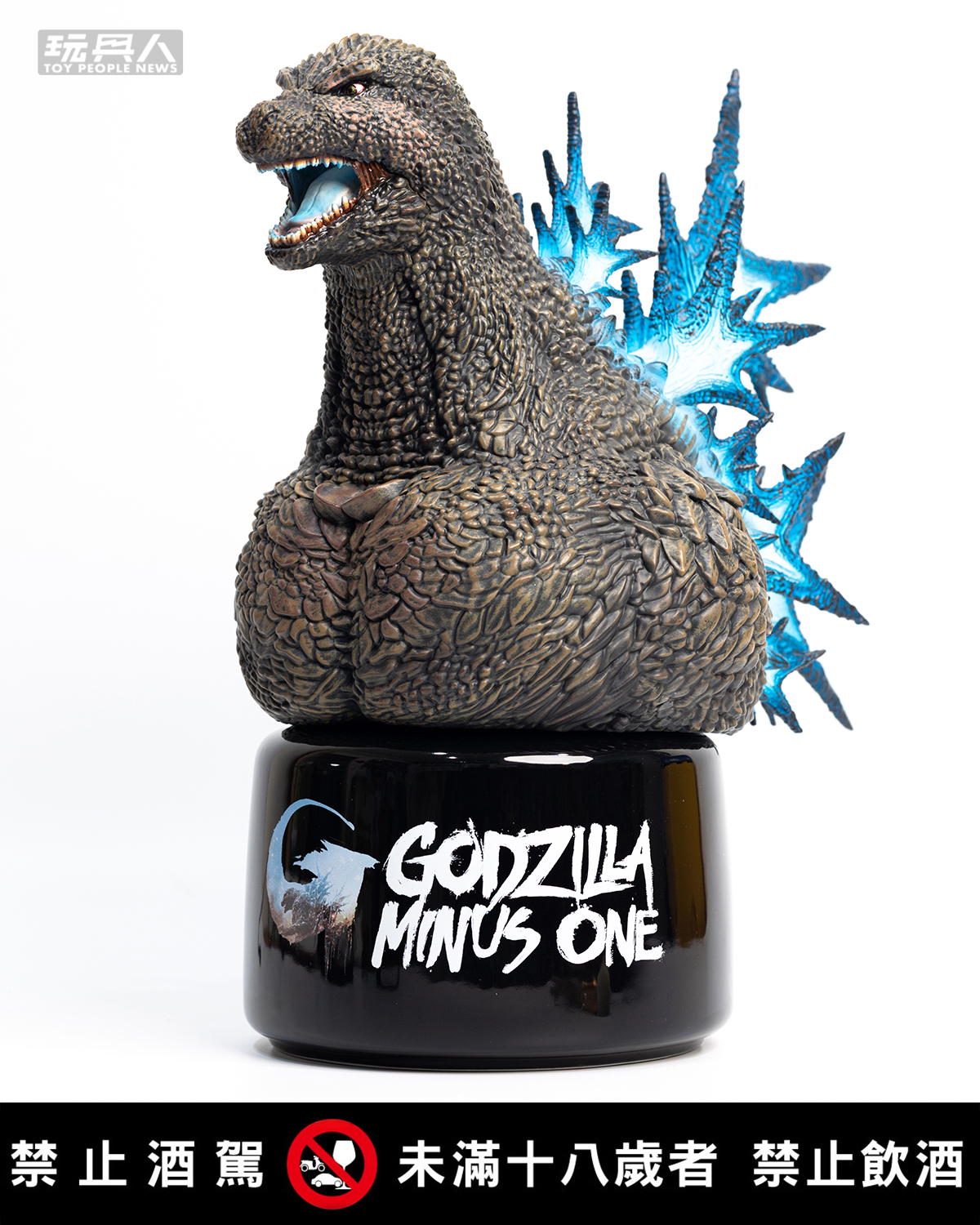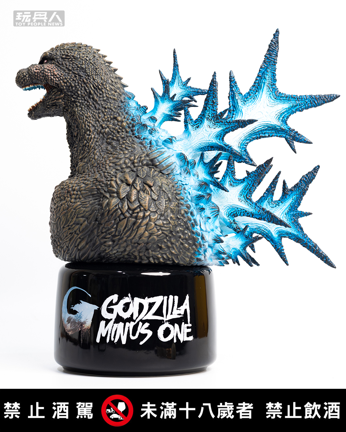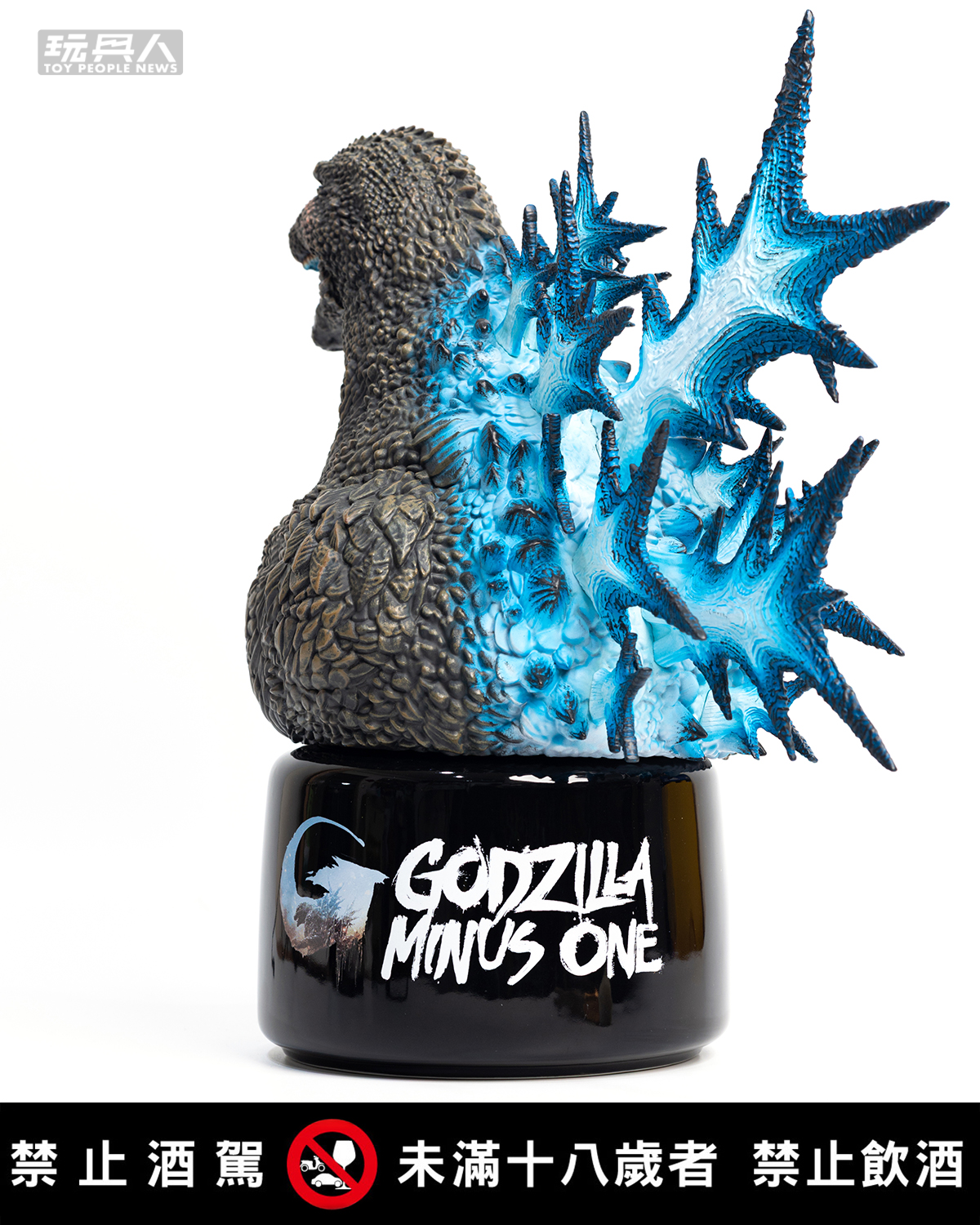 本次鑫羿文創為了回饋死忠粉絲,凡購買本次「哥吉拉系列造型紀念酒-哥吉拉-1.0款・基本版」的玩具人將擁有「哥吉拉-1.0款・熱線版」的限量優先購買權;可如果是先前都錯過的玩具人也不用擔心,現在買都還來得及!購買任一款先前鑫羿文創的哥吉拉系列造型紀念酒,你也能把發光的熱線版本帶回家收藏。那麼,我們就趕快從各個角度看看這次的主角吧。