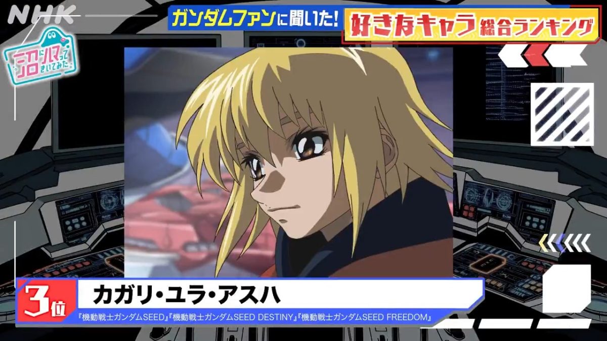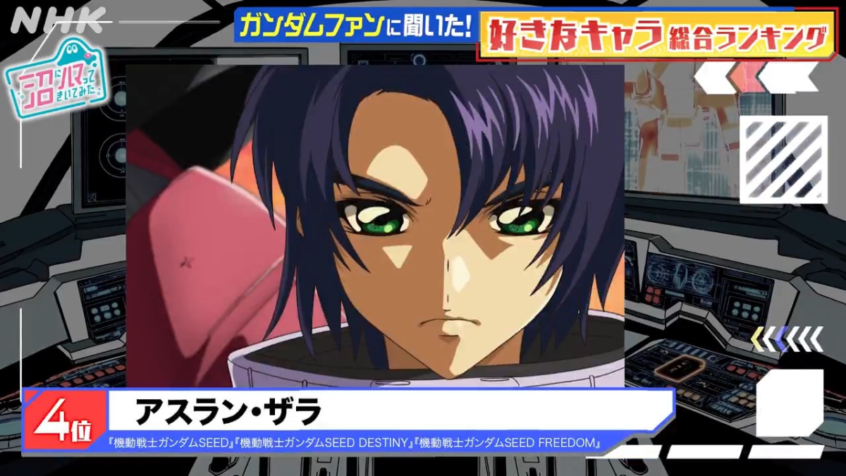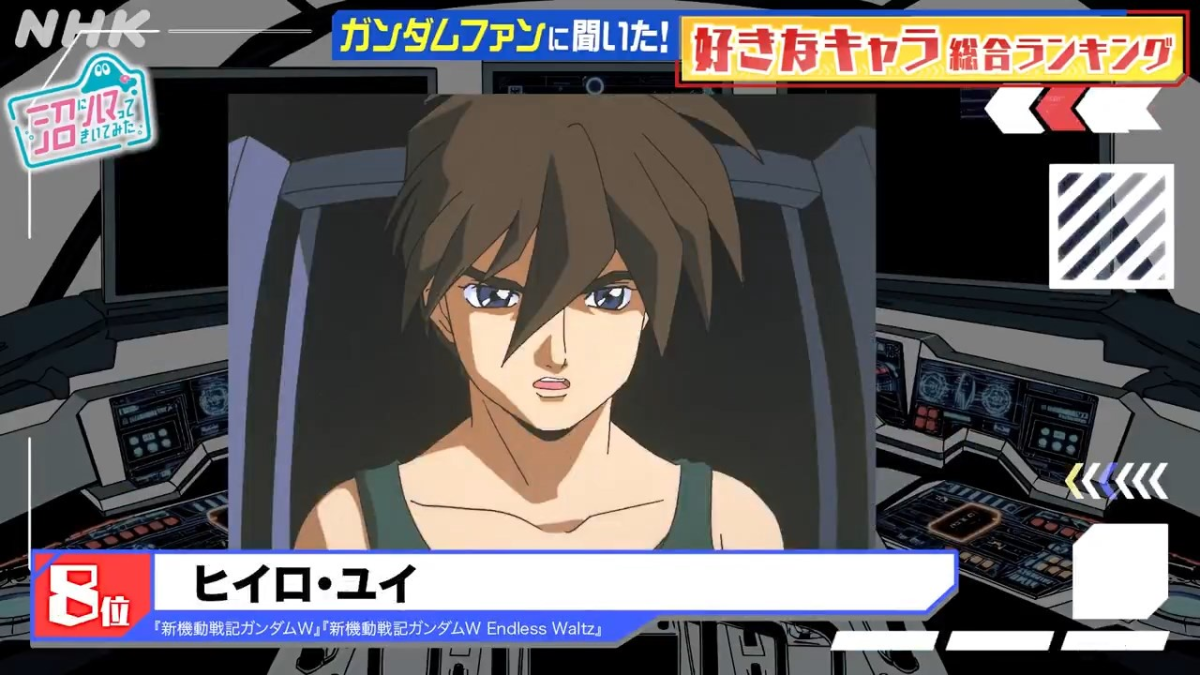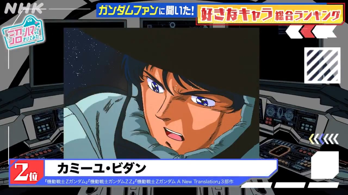 有趣的是,這次節目會一次公開超過萬名鋼彈粉絲進行的大規模問卷結果,包含「最喜歡的經典名場面」、「最喜歡的音樂」、「最喜歡的 MS/MA」等排行榜,其中「最喜歡的角色」也先行於節目預告中公布。