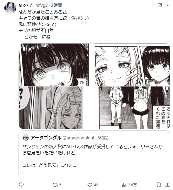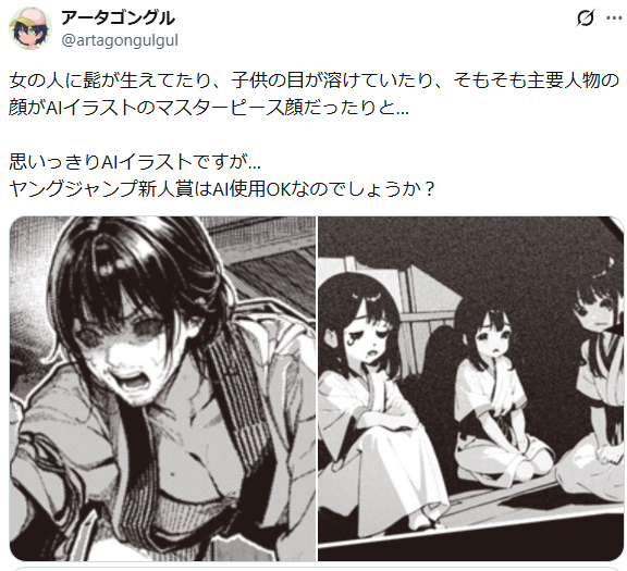目前「Young Jump 新人漫畫大賞」官方貼文底下也湧入了大量網友批評,認為使用AI的作品居然能獲獎,認為主辦單位這樣的審查讓人失望。