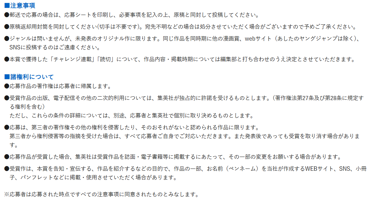 官方的新人漫畫大賞應募規則中,並 沒有任何條文明確禁止使用 AI,也沒有要求投稿者申告「是否使用 AI」。