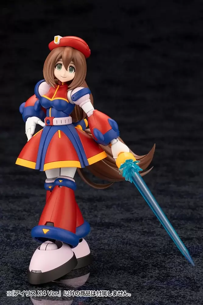 附有三款替換表情零件:通常、向右看微笑臉、向左看困擾臉與五對替換手勢零件;濃密的頭髮分為髮根、髮中和髮尾三部分,可動的髮軸和球形關節能夠配合動作擺動,細膩展現不同的狀態。裙子也分為五片,每片皆能獨立活動,因此可以擺出各種姿勢,而不會影響腿部的活動。另外,帽子也可以拆卸,並配有專用的帽子替換件,可以還原不戴帽子的樣子~包裝盒上還印有《洛克人X》系列眾多角色設計的原畫師水野佳祐繪製的原創插圖!