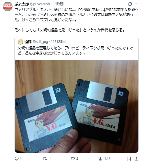 近日日本X上有位推主,在整理自家老爸遺物的時候,意外發現了兩片保存良好的磁碟片,由於年代久遠不知道是什麼東西,在X上發文詢問網友,瞬間引起不小關注,許多老玩家驚呼這款真的罕見的稀有遊戲。