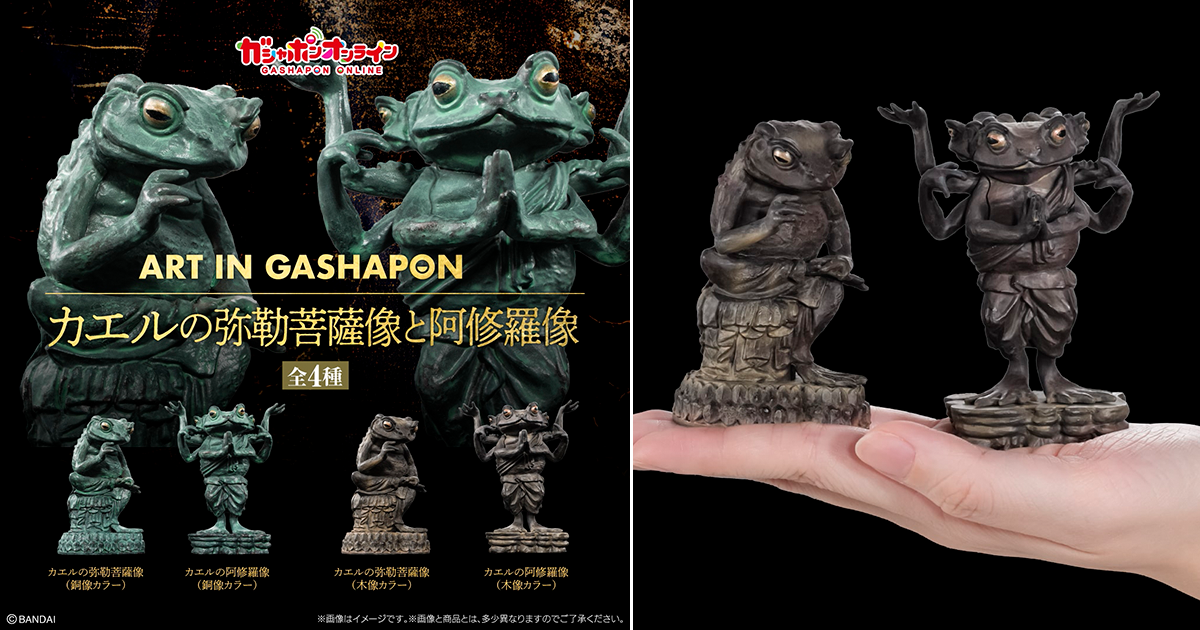 由日本萬代公司轉蛋玩具品牌 GASHAPON 發行、與藝術家合作的「Art in Gashapon」系列在與日本青蛙作品造型作家 かずたそカンパニー(Kazutaso Company)攜手打造「青蛙風神雷神像」、「青蛙金剛力士像」之後,再度發表全新的「青蛙彌勒菩薩像與阿修羅像」!現正於 GASHAPON ONLINE 展開預訂,預計 2026 年 4 月下旬開始發貨,建議售價為每轉 500 日幣,一共有四種款式可以收集。
