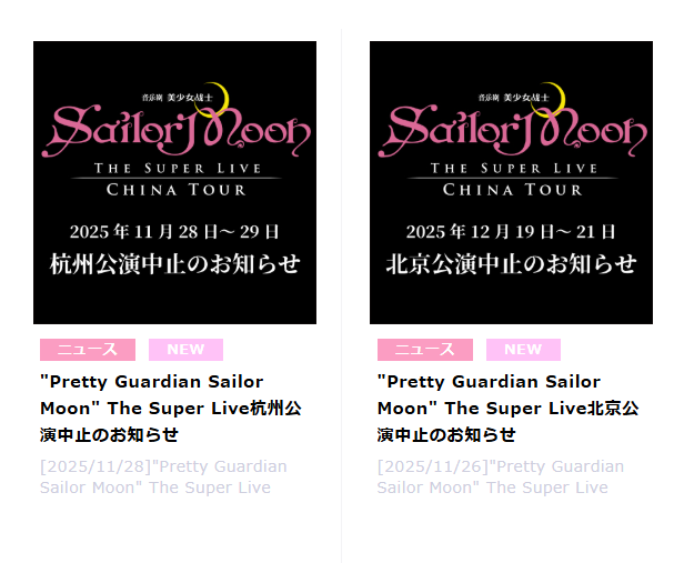另外,原定要在11月底跟12月中下旬演出的舞台劇《美少女戰士》,也在官方網站上宣布因為諸多原因只能取消在杭州與北京的公演。
