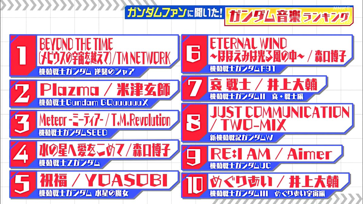 這邊也給大家看看萬人票選的「最喜歡的鋼彈音樂」排行榜,讓我們一起來看看有哪些入選吧!