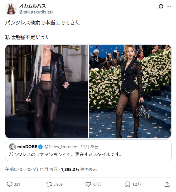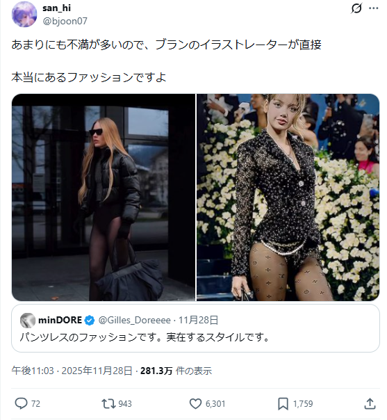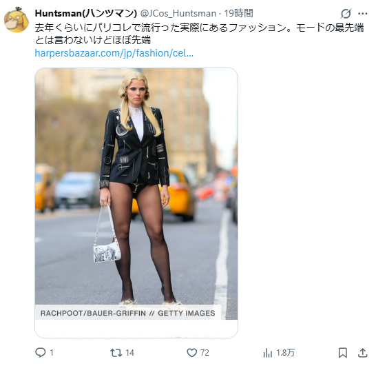 這類風格常見於歐美名人與時尚伸展台,強調以外套、襯衫搭配內搭褲或絲襪,營造前衛視覺效果。也稱讚繪師是認真去跟隨時尚風潮,而非隨意把服裝設計出來。