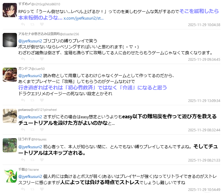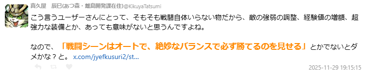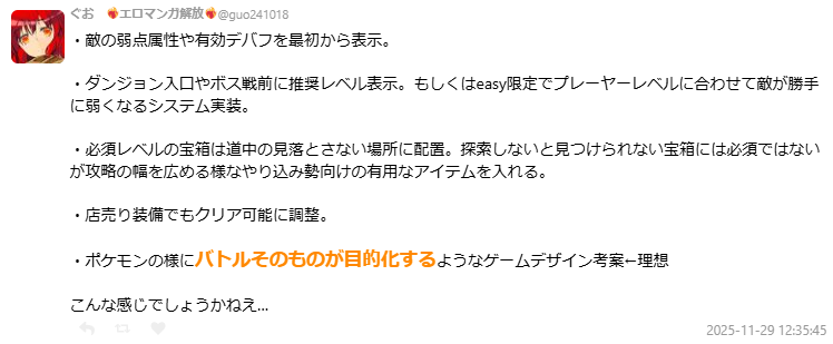 這篇貼文曝光後,迅速引發玩家、開發者、遊戲設計愛好者的大量回應,從「降低敵人火力」到「戰鬥直接視為劇情演出」各種意見湧現,意外成為一場 RPG 難度與玩法多樣性的「大反省會」。